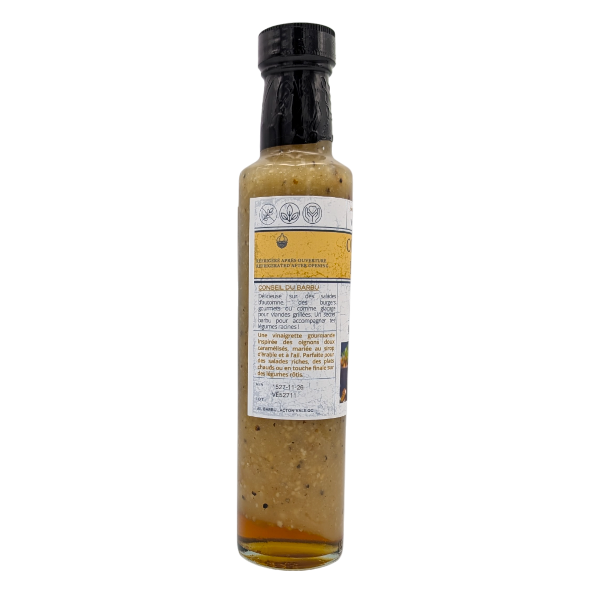 Découvrez la douceur de l'érable, mariée à la richesse de l'oignon et ;a la profondeur de l'ail dans notre vinaigrette artisanale.Idéale pour sublimer vos salades ou comme marinade, cette vinaigrette est un incontournable pour les amateurs de saveurs authentiques.