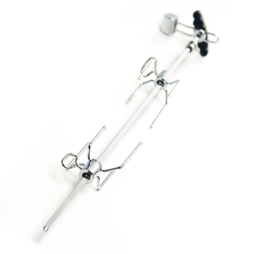 L'ensemble de rôtisserie universel comprend un moteur électrique avec interrupteur marche/arrêt, des fourches à broche robustes, un contrepoids, une tige de broche de 39,5 pouces et des supports OEM universels pour les grils Broil King.