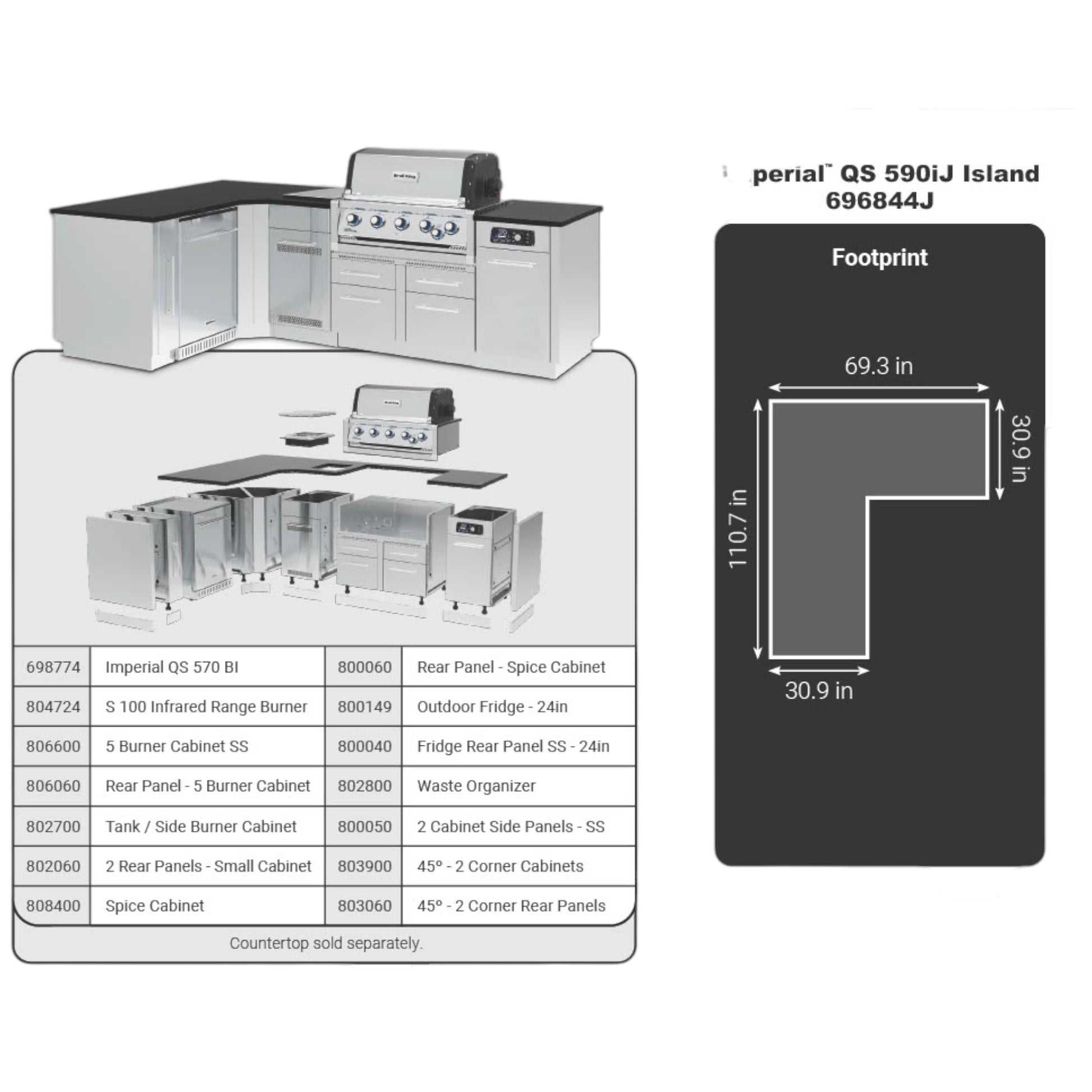 *Le comptoir en granit, l’évier en acier inoxydable et le robinet sont montrés à titre illustratif et ne sont pas inclus.