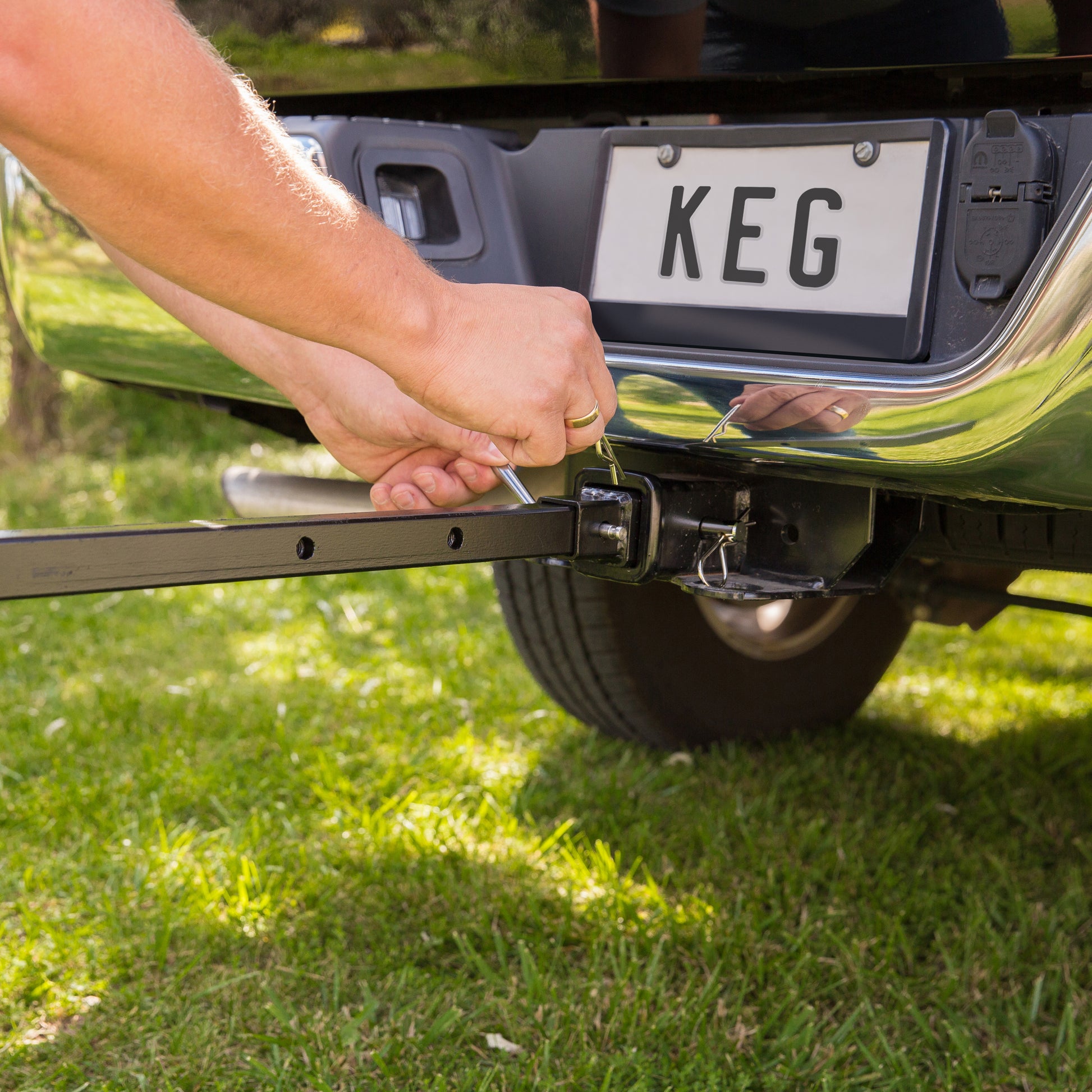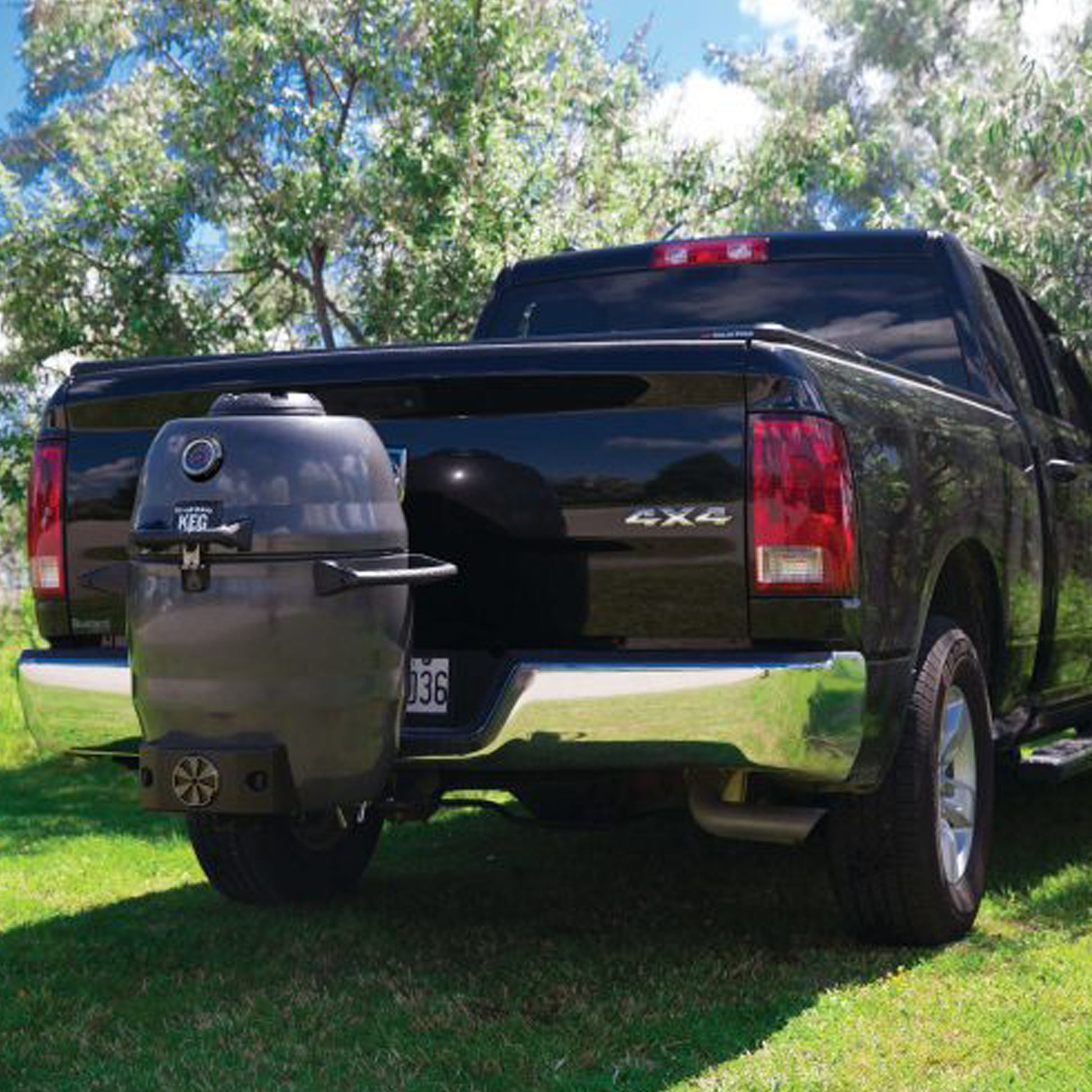 Vous ne trouverez ce type d'accessoire avec aucun autre barbecue de style kamado. La meilleure façon d'emporter votre Keg avec vous lorsque vous voyagez ; insérez simplement l'adaptateur d'attelage de 1,25po ou 2po dans le récepteur d'attelage de remorque de votre véhicule, retirez le chariot de votre Keg, faites-le glisser sur l'adaptateur monté sur votre véhicule et vous êtes prêt à voyager !