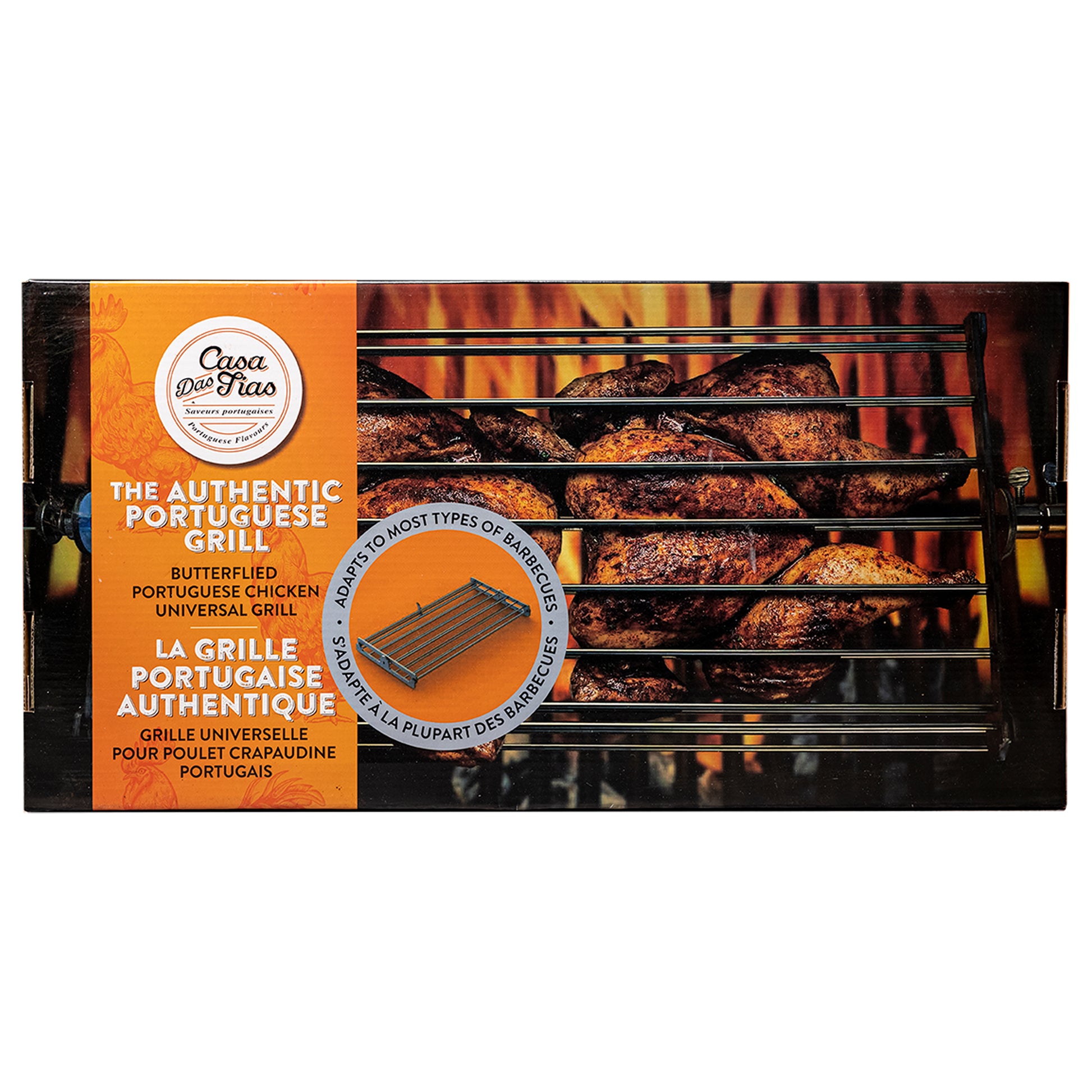 Grille portugaise authentique ! Changez votre poulet traditionnel barbecue en vous procurant notre grille universelle pour poulet en crapaudine portugais ou grillades. Bon appétit !