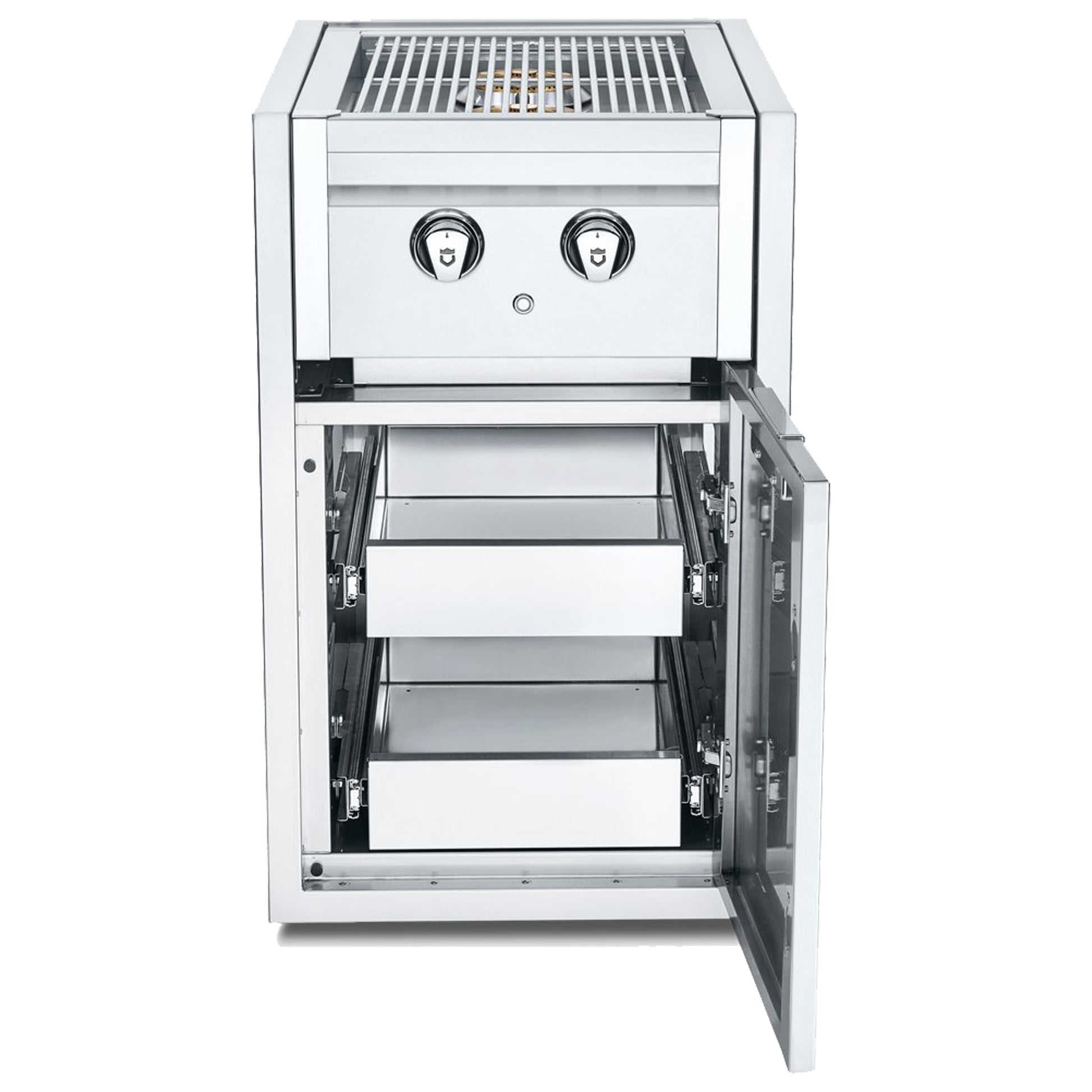 Le brûleur latéral de la série Infinite est parfait pour augmenter les capacités de cuisson de toute cuisine extérieure Crown Verity. Cette unité a deux (2) brûleurs de 12 000 BTUH avec une armoire et un support de réservoir de propane ci-dessous. Comprend un couvercle en acier inoxydable.
