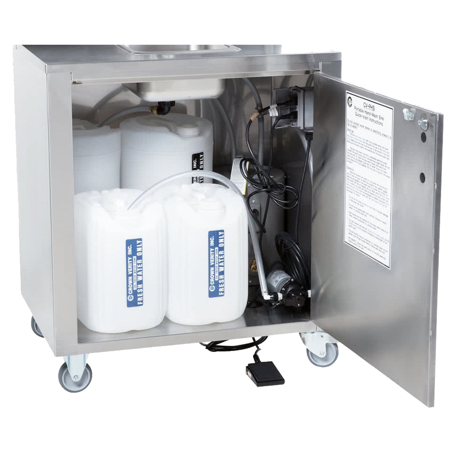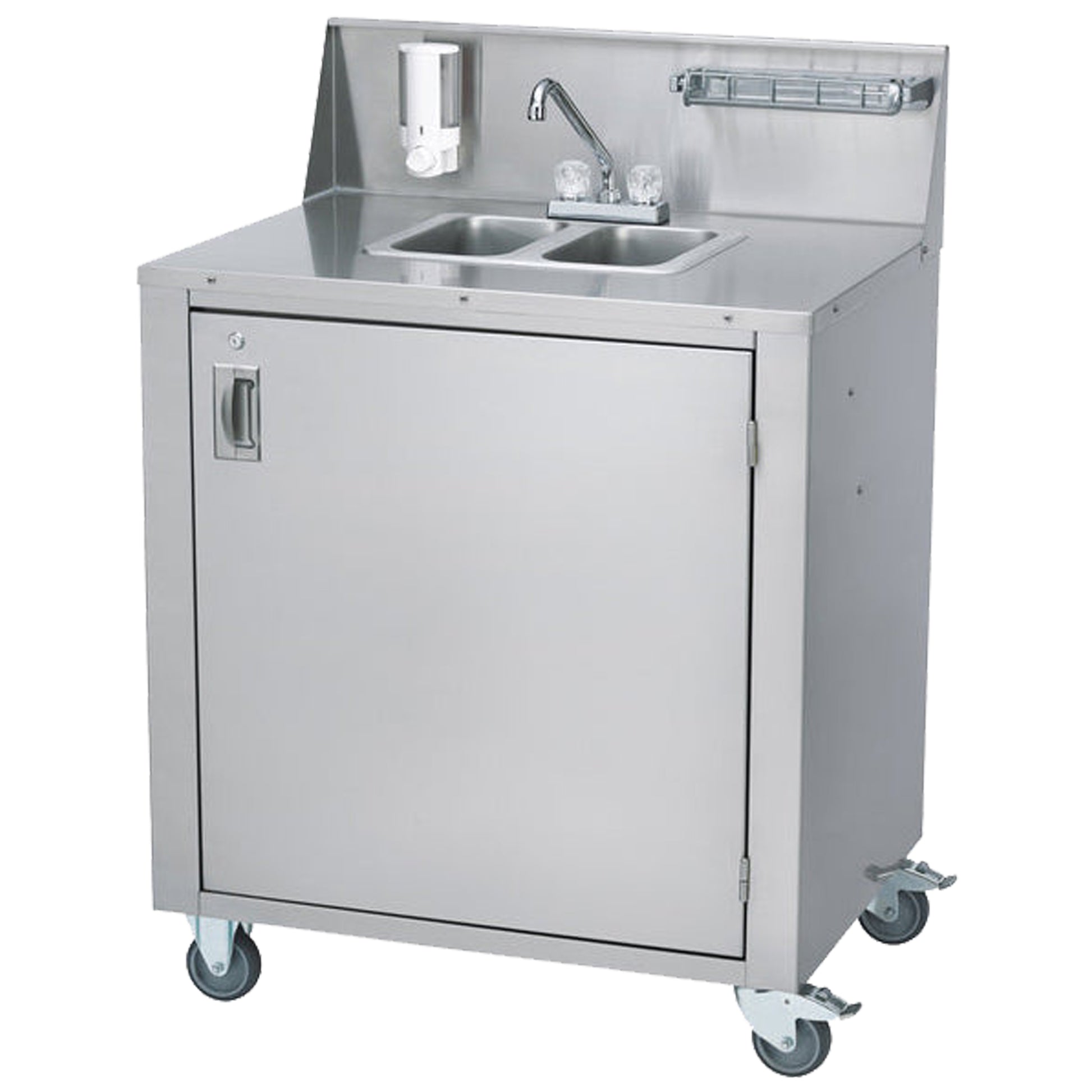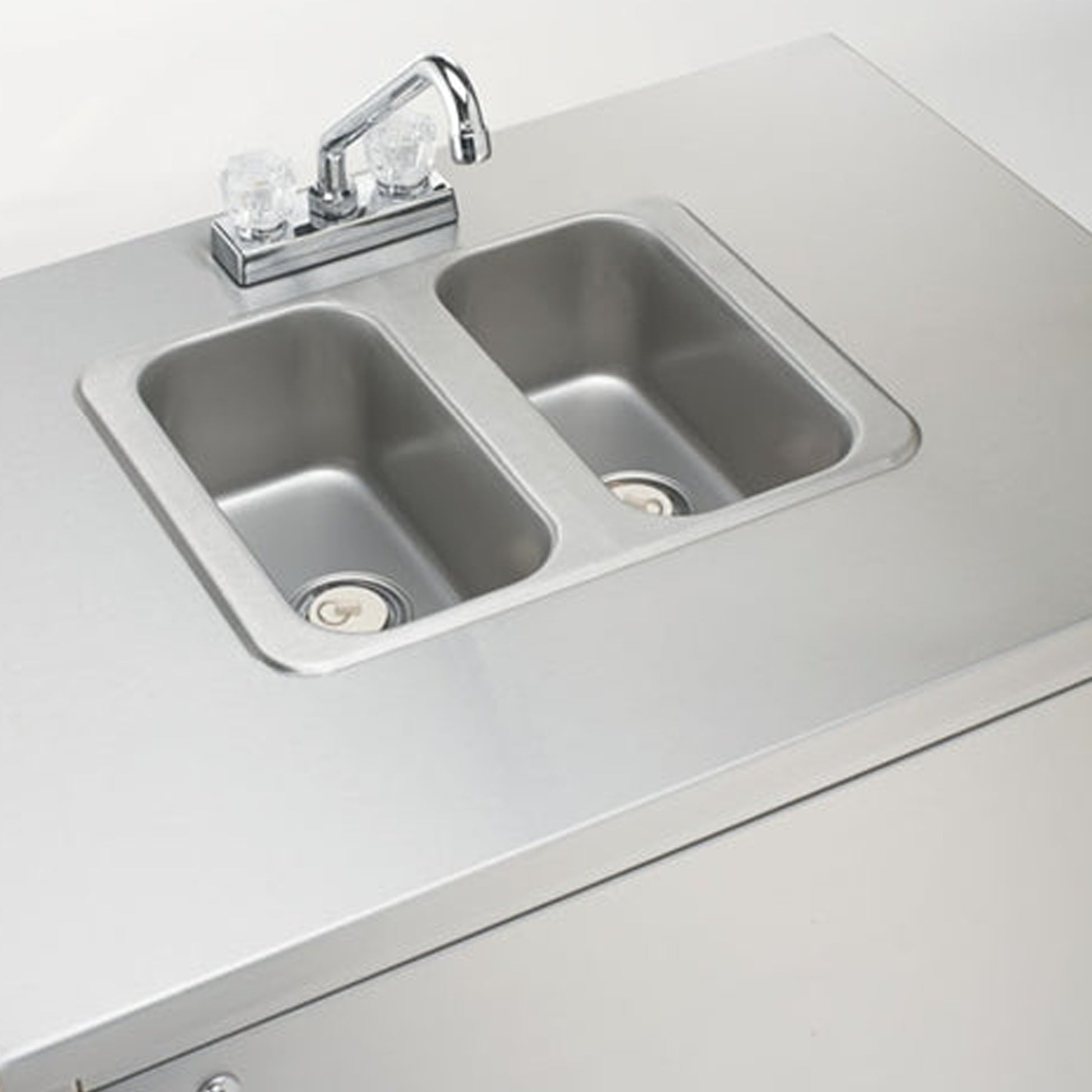 Évier double eau froide seulement. L'ensemble inclus deux réservoirs de 5 gallons d'eau fraiche, deux réservoirs d'eau user, une pompe à savon et un porte serviette