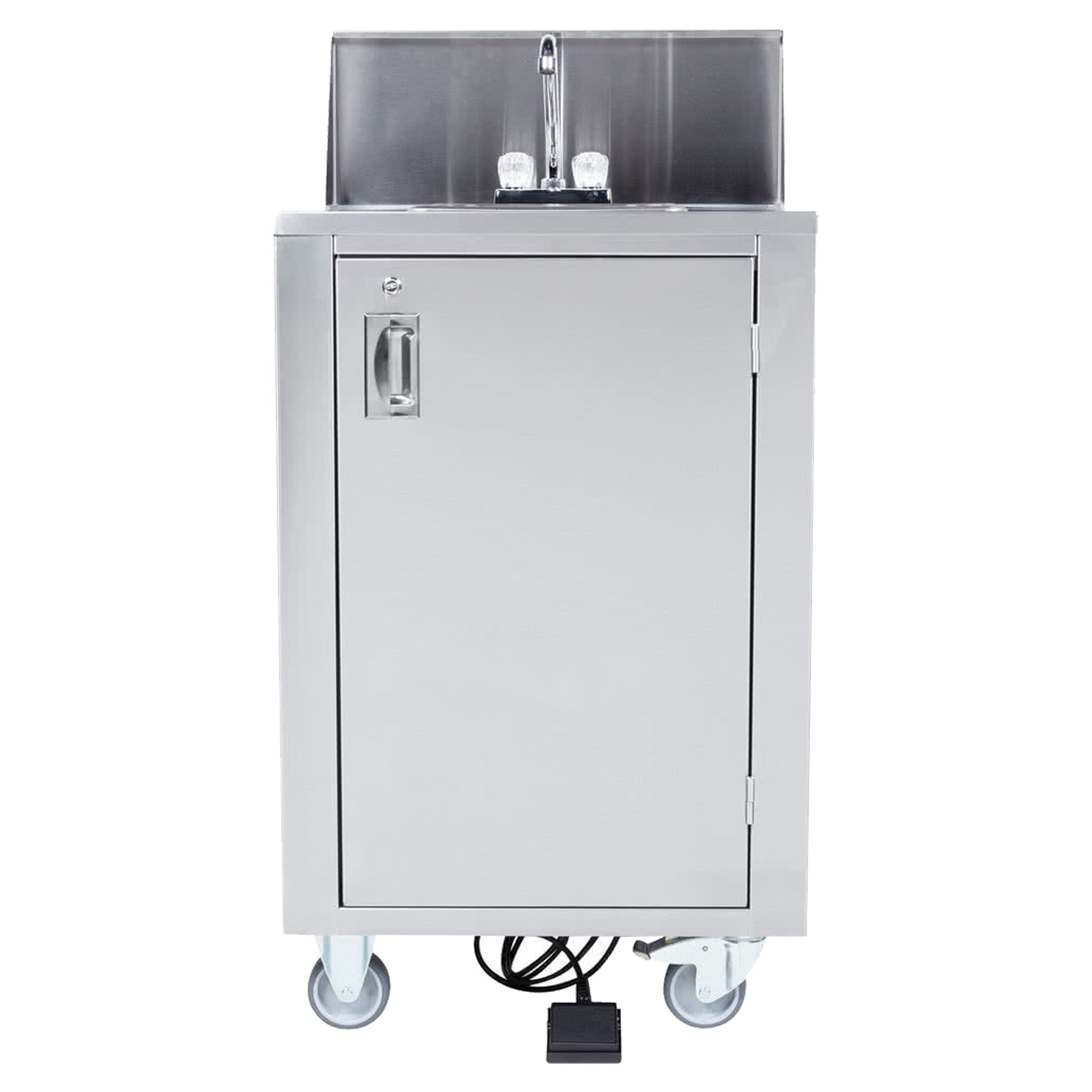 Évier simple compact eau froide seulement. L'ensemble inclus un réservoir de 5 gallons d'eau fraiche, un réservoir d'eau user, une pompe à savon et un porte serviette