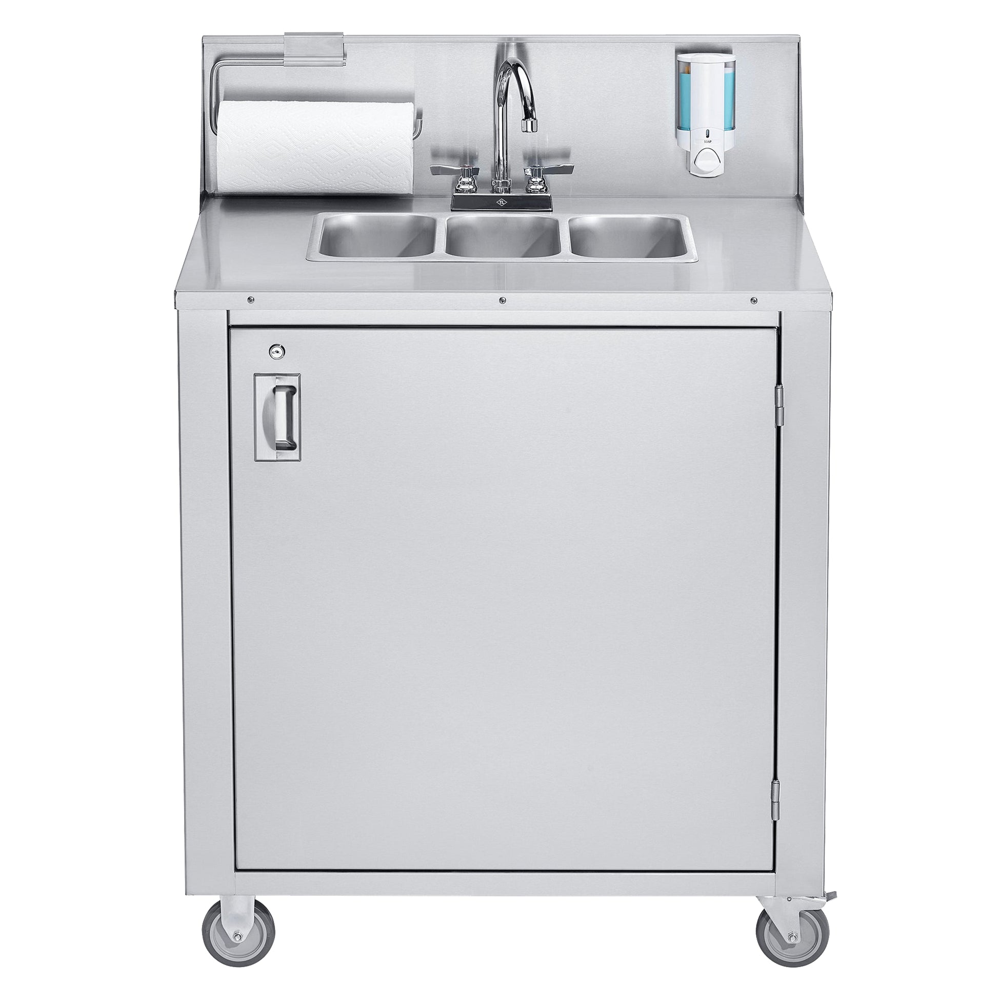 Évier triple eau froide et eau chaude. L'ensemble inclus deux réservoirs de 5 gallons d'eau fraiche, deux réservoirs d'eau user, un chauffe eau, une pompe à savon et un porte serviette