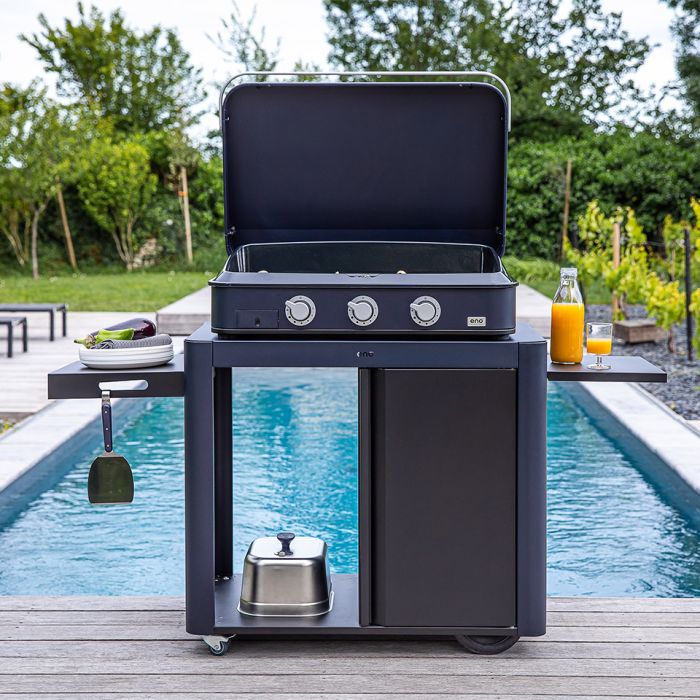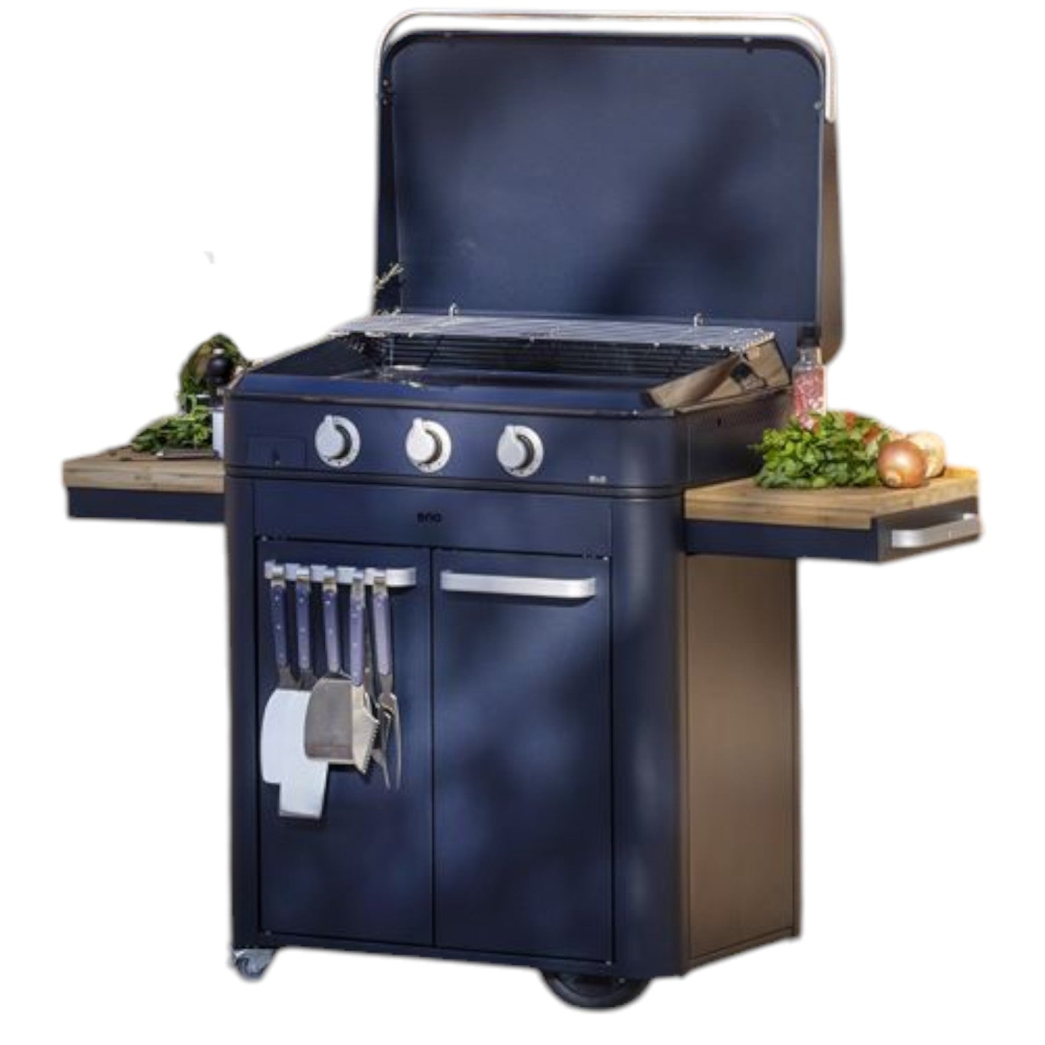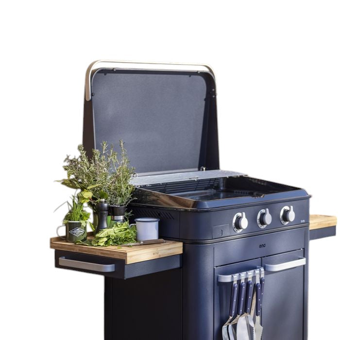 Eno - Ensemble Plancha 3 brûleurs et chariot ENOSIGN 80 cm Bleu Navy