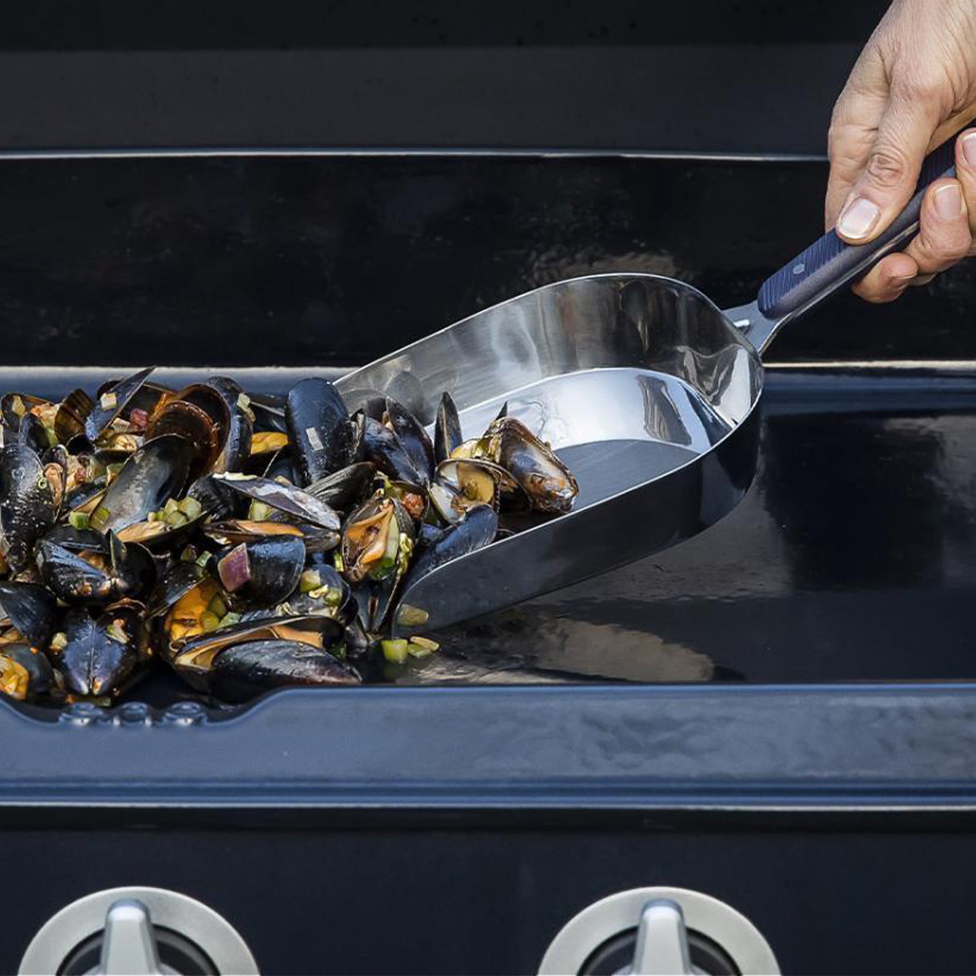 Permet de manipuler les moules et fruits de mer pendant la cuisson. Idéal pour le service.
