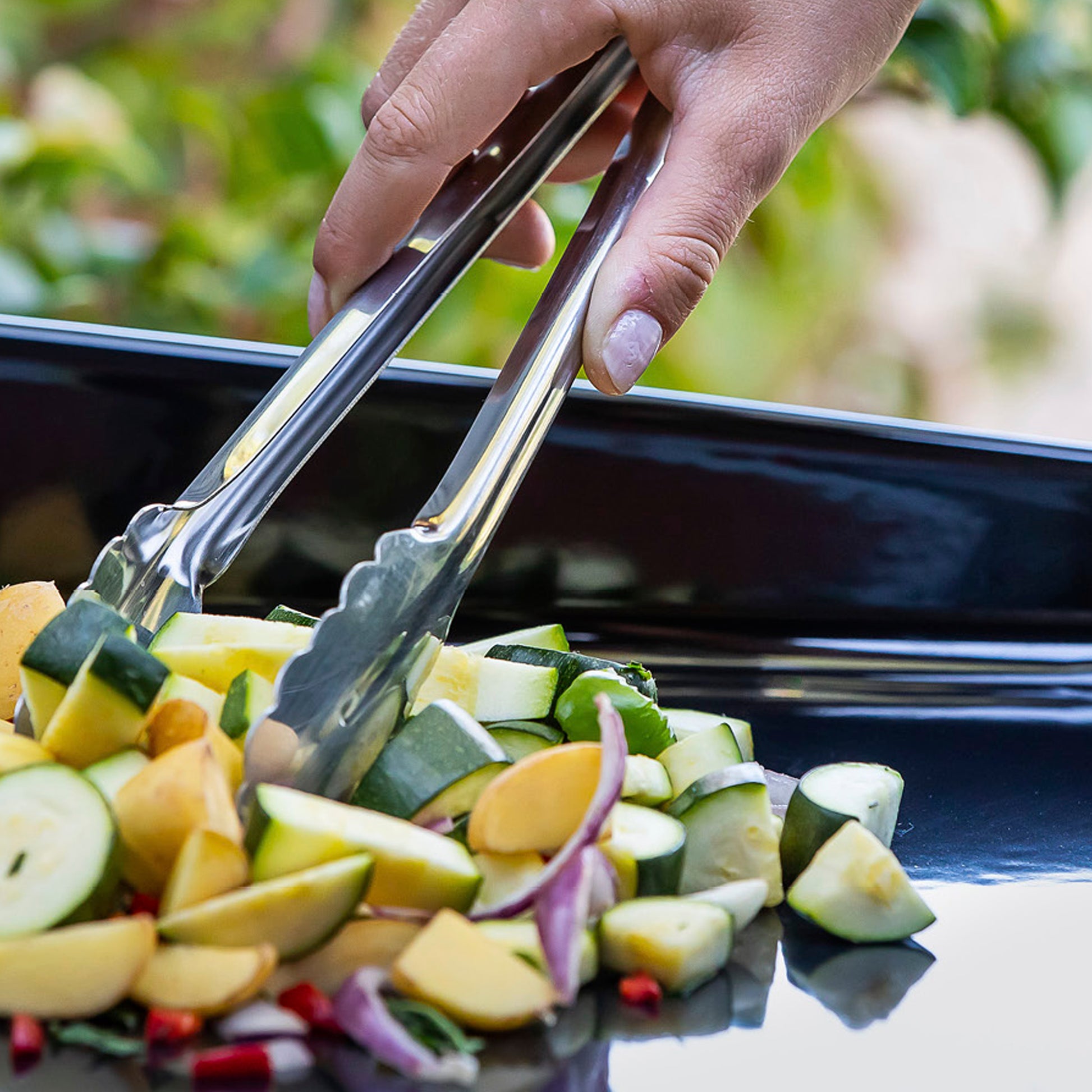 Pince large à manipuler en acier inoxydable 30 cm. Pince en inox à larges pelles pour manipuler les aliments de grande dimension.