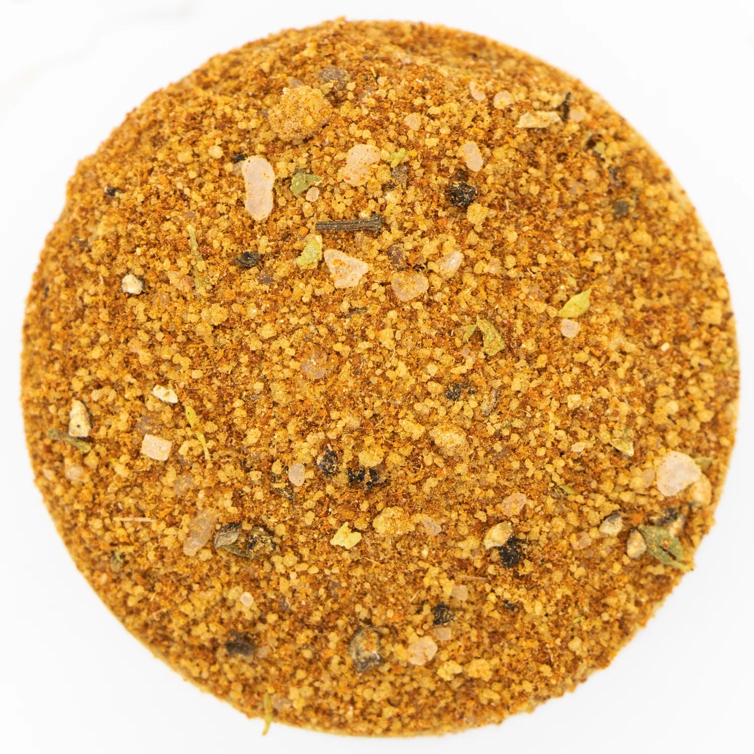 Paprika fumé - Sel de mer - Cassonade - Ail en poudre - Piment de Cayenne - Poivre italien - Poudre d’oignon - Thym séché - Origan - Moutarde moulue