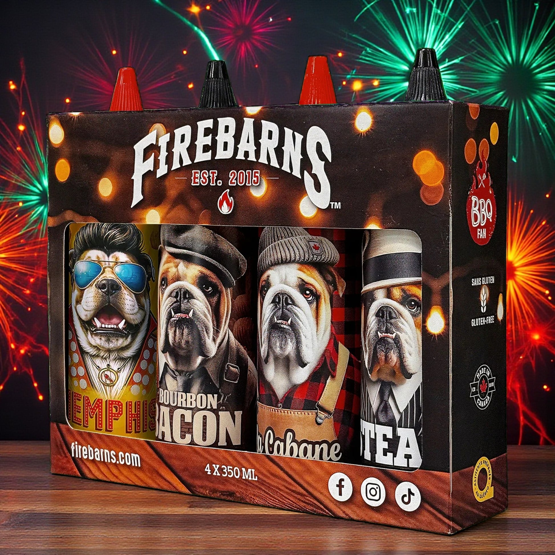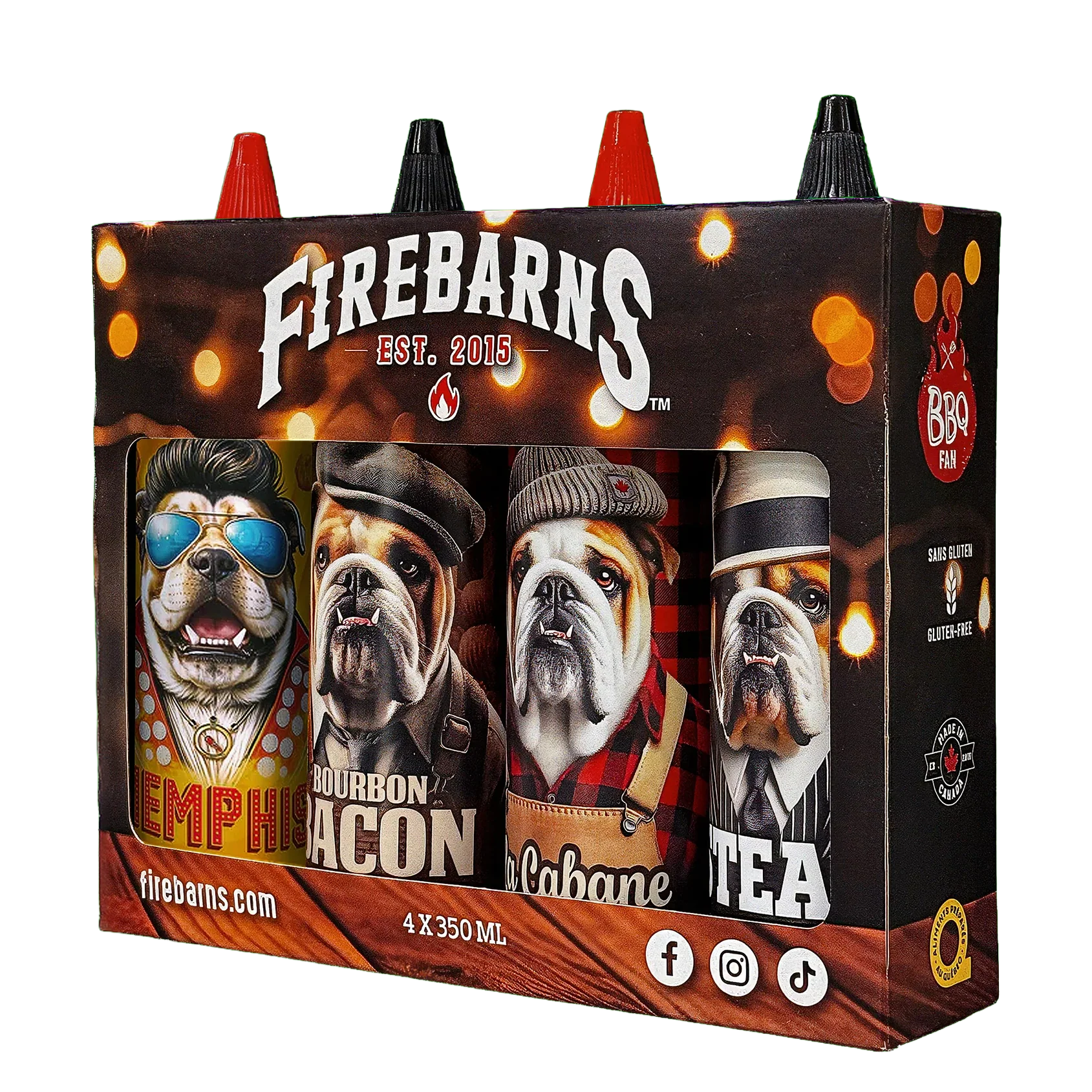 Découvrez la Boîte Fan de BBQ Firebarns : un assortiment de 4 sauces BBQ 350 ml aux saveurs uniques, parfaites pour rehausser côtes levées, burgers, brochettes et grillades. Le coffret idéal pour les passionnés de BBQ ou pour offrir en cadeau aux vrais mordus de saveurs fumées et innovantes.