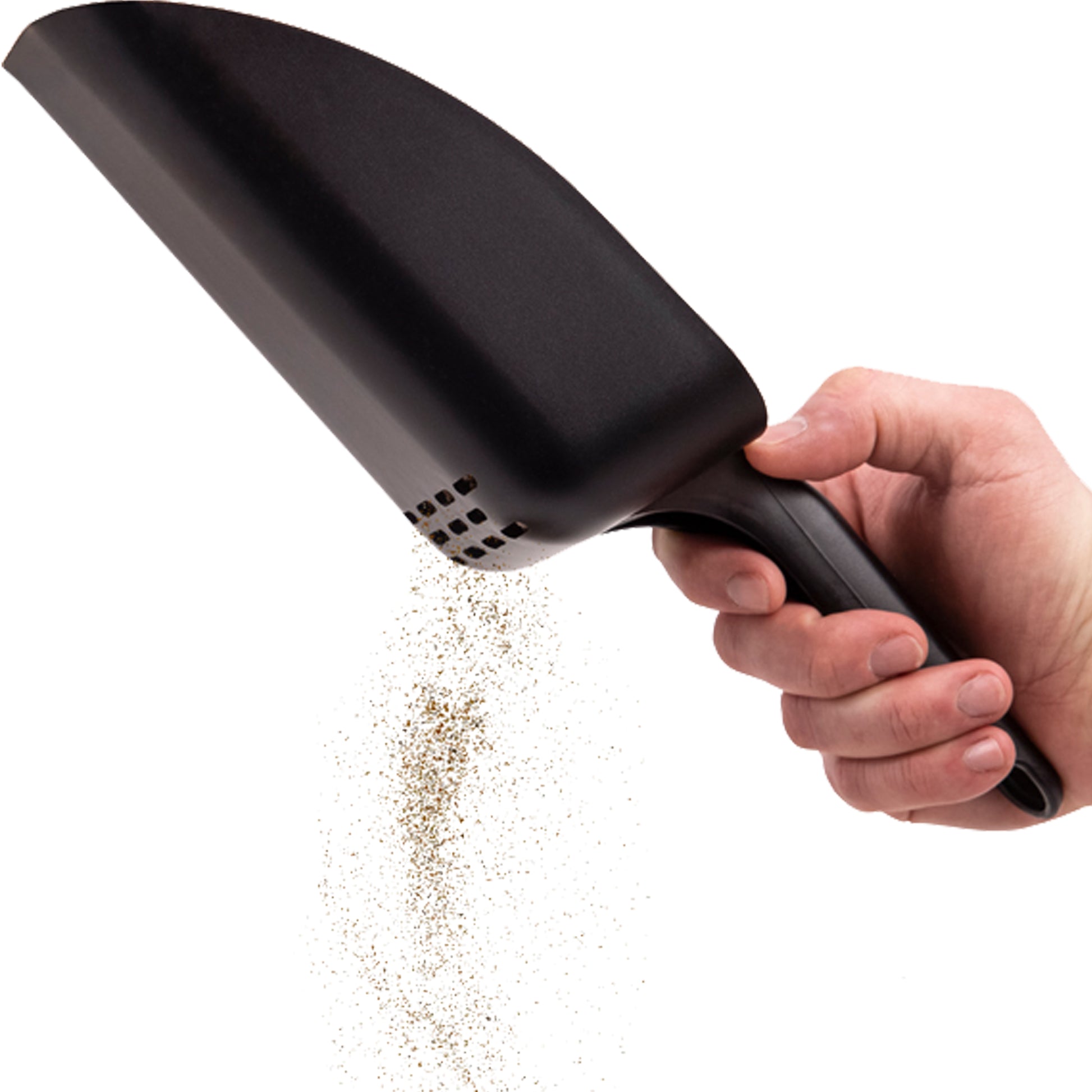 La pelle à granules de Grillpro peut facilement réduire les débris et la poussière créés lorsqu'on vide directement le sac à l'aide de son tamis intégré.
