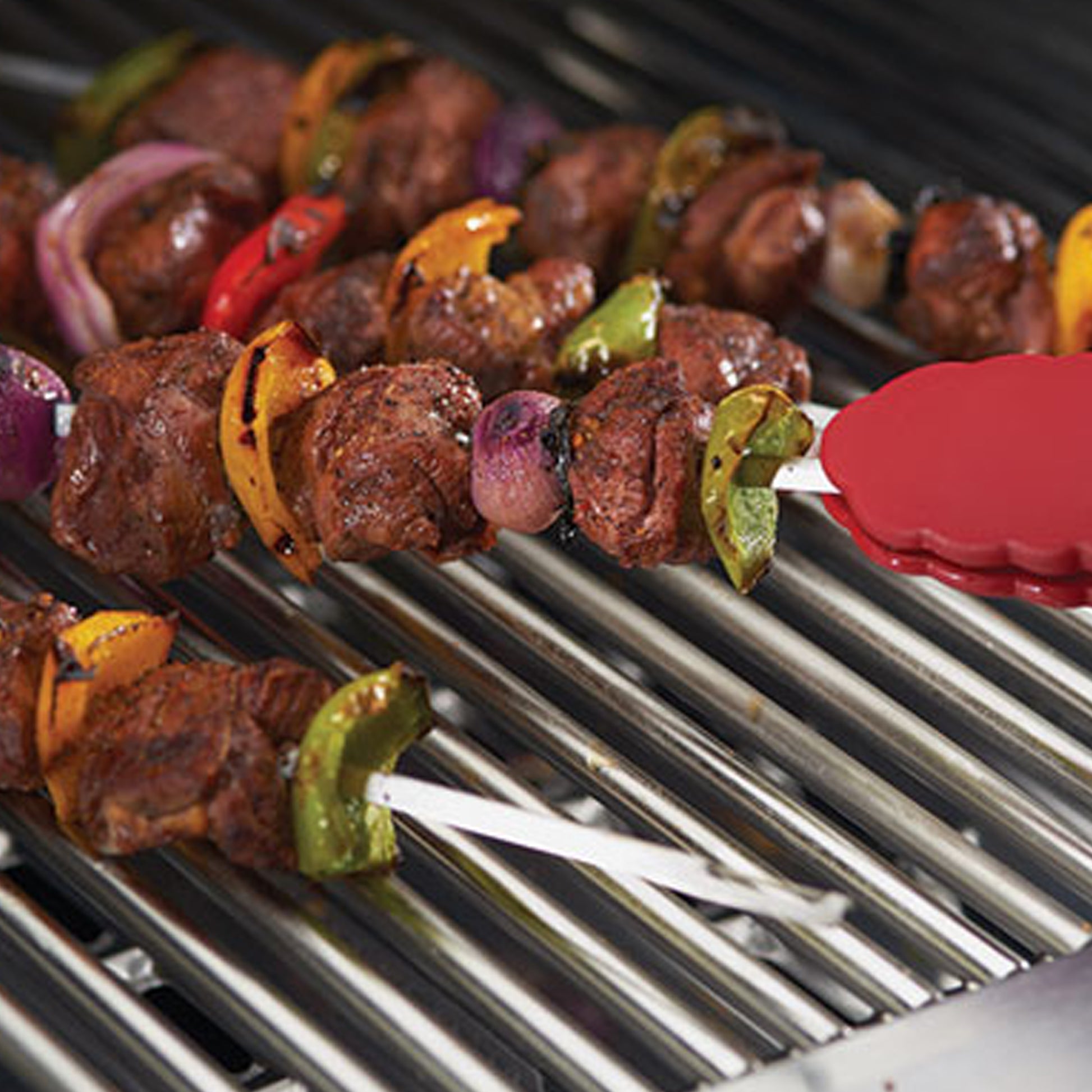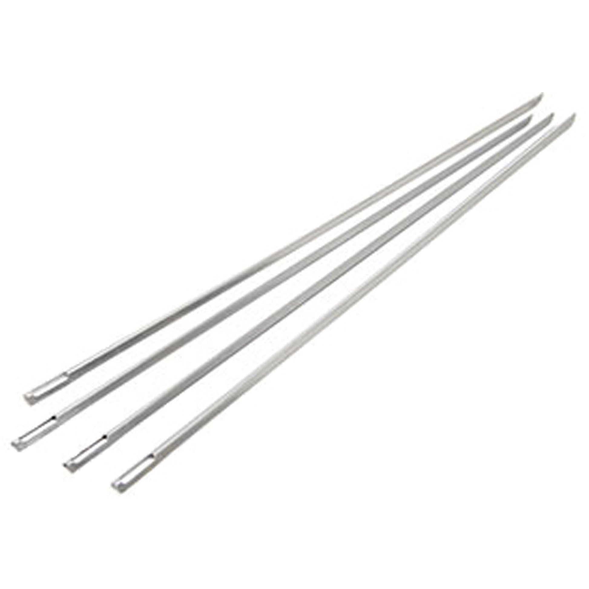 Ensemble de quatre 15 po. Brochettes. Construction entièrement en acier inoxydable. Les brochettes uniques en forme de V empêchent les aliments de tourner sur l’arbre.