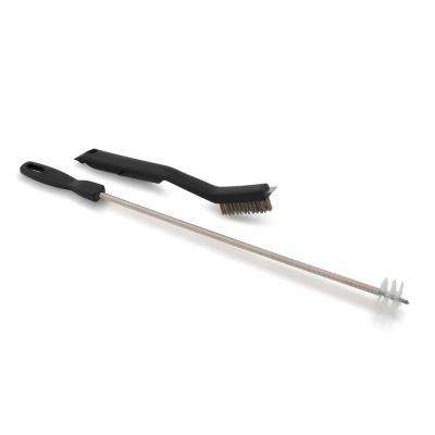 Brosse de nettoyage avec tige flexible à ressort hélicoïdal et manche en résine. La brosse de détail comprend un outil de nettoyage de hublot de brûleur. Idéal pour nettoyer les brûleurs, les plaques chauffantes, les boîtes de collecte, etc.