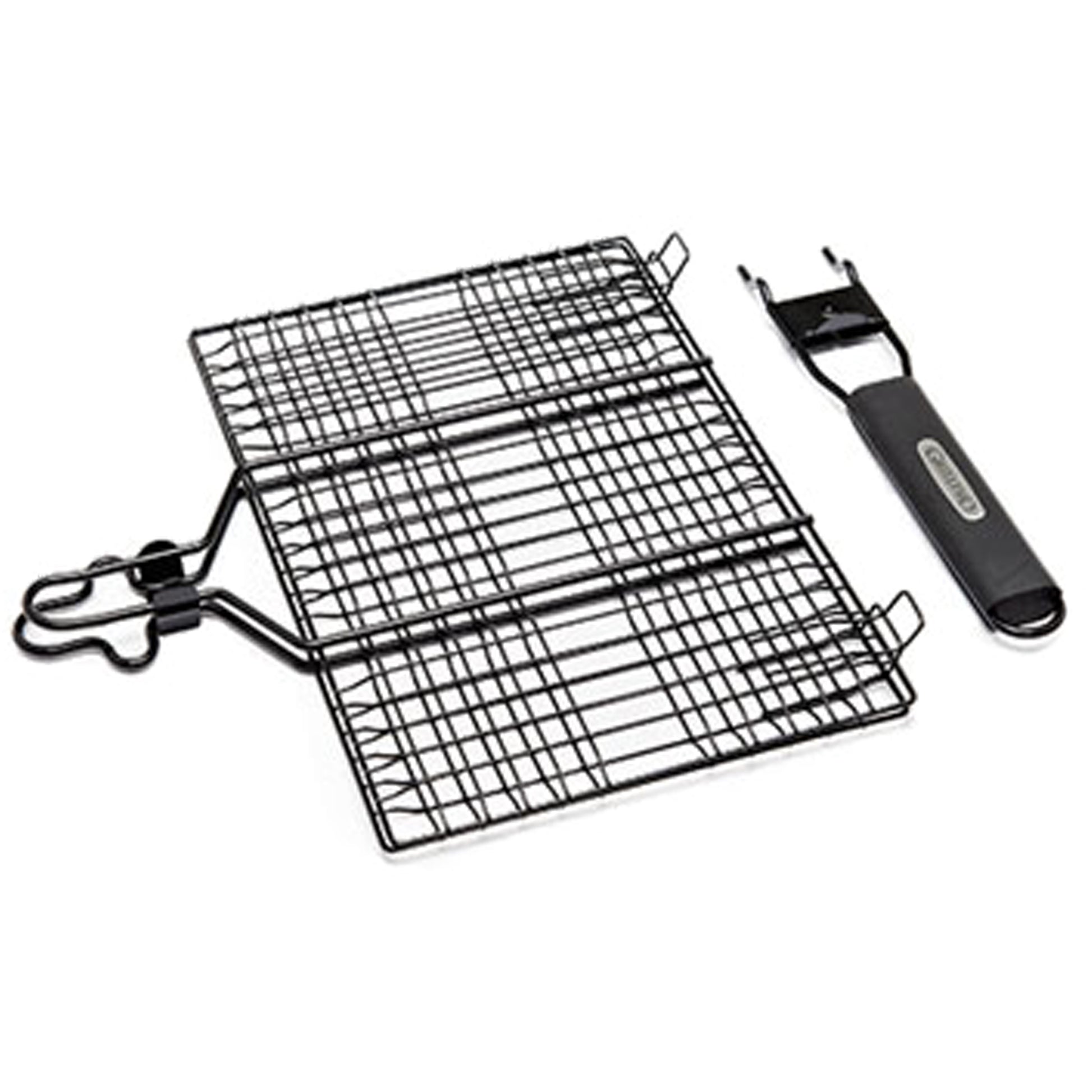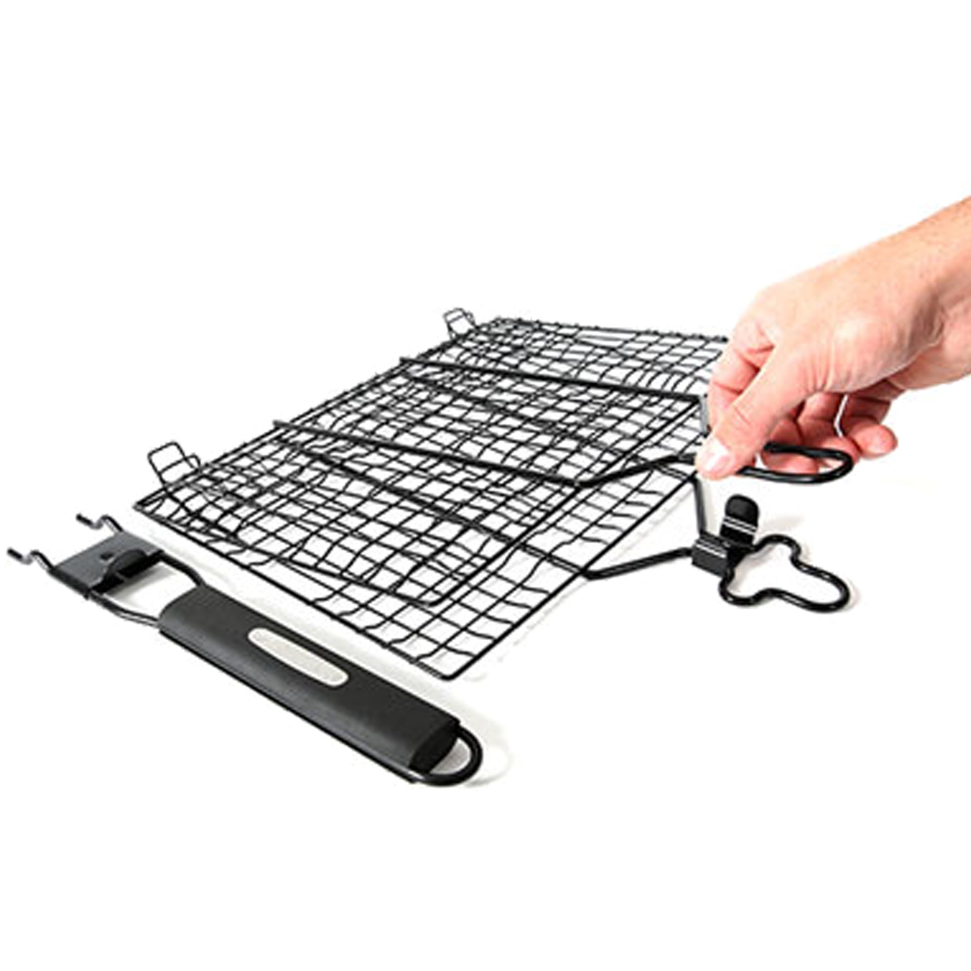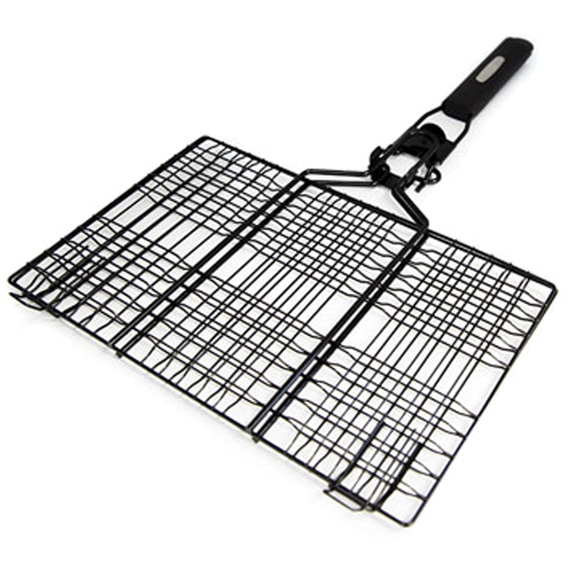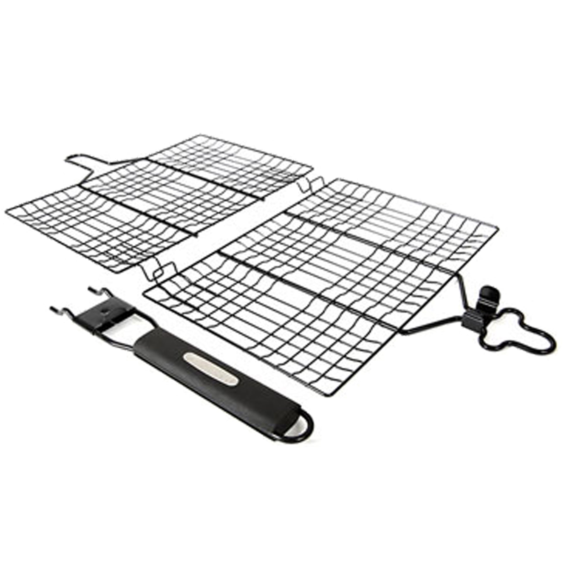 Panier à hamburger antiadhésif pour poulets de chair. Poignée amovible à prise souple.
