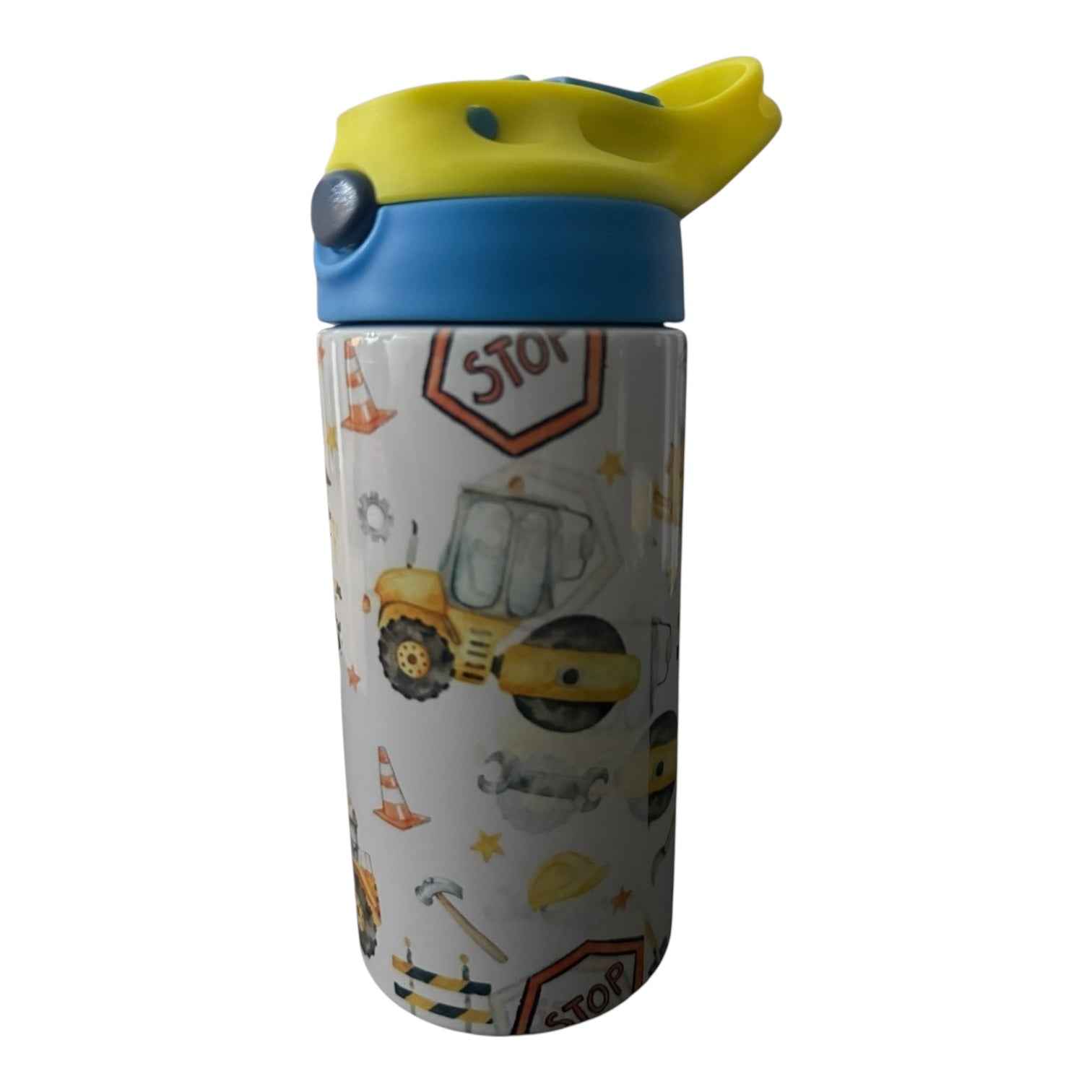 Parfaite pour les petits fans de camions et de construction, cette bouteille isotherme à l'effigie du monde du chantier affiche fièrement le mot " Mini " sur un fond inspiré des zones de travaux. Avec ses engins colorés, casques et étoiles, elle plaira à coup sûr aux minis travailleurs en herbe !