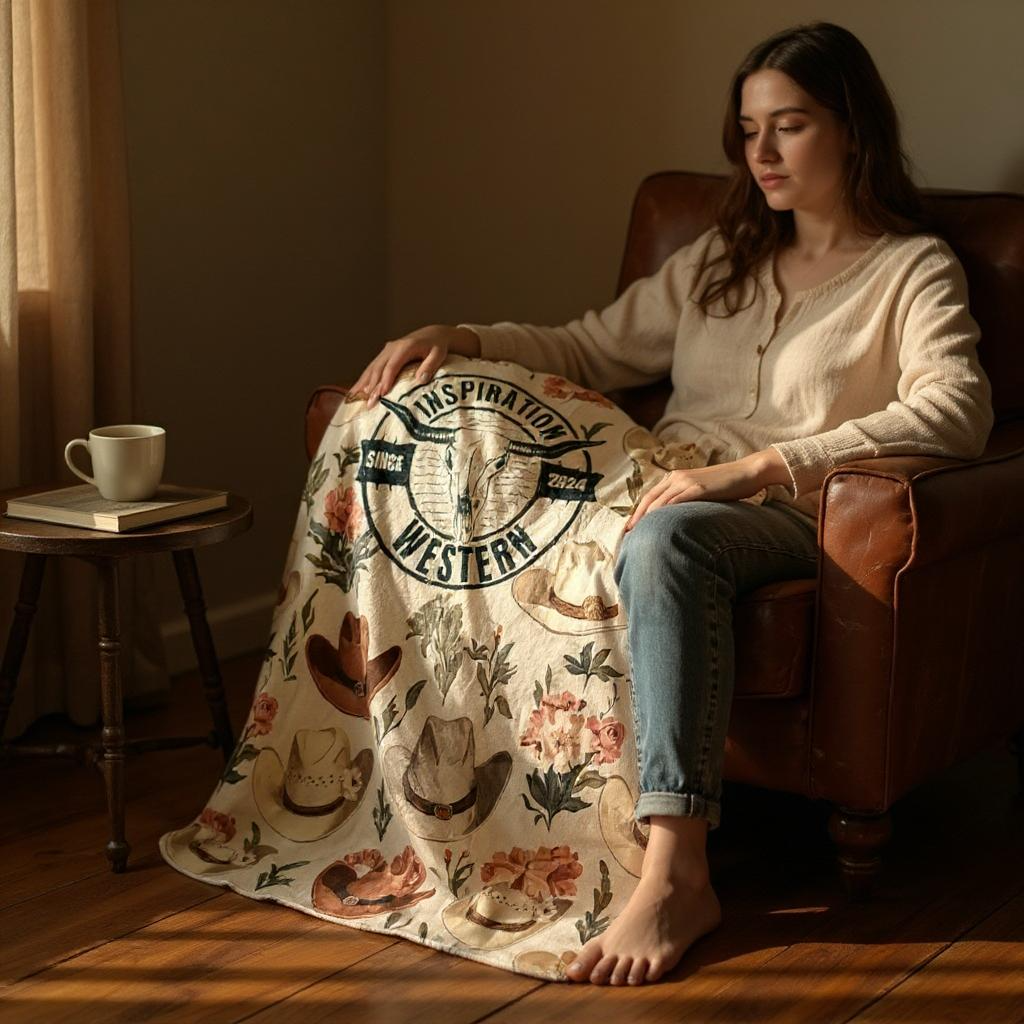 Inspiration Western - Couverture douce Inspiration Western – Modèle Chapeaux & Fleurs