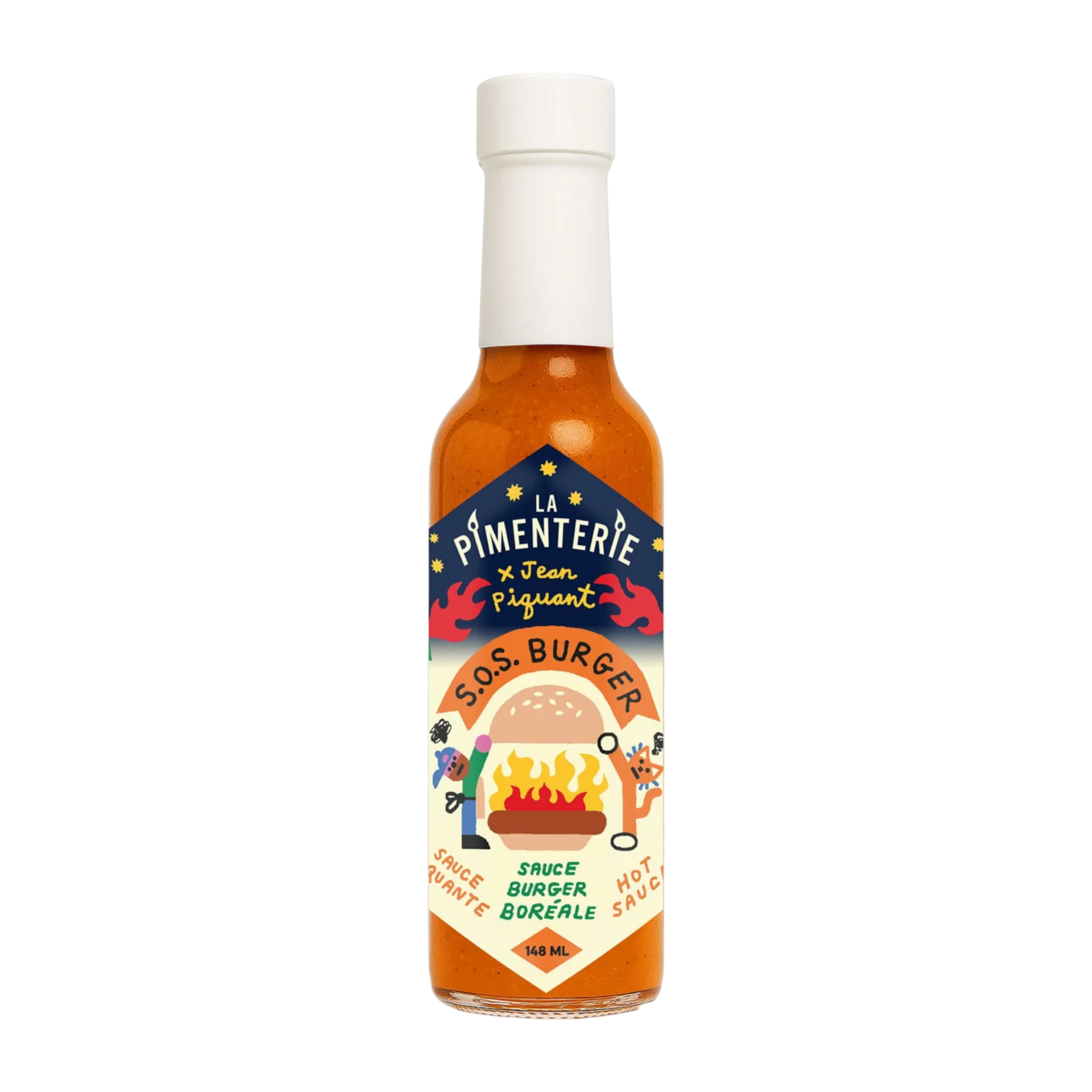 La sauce piquante SOS Burger, c’est la rencontre entre La Pimenterie et Jean Piquant (et son fidèle chat Paul). Ensemble, on a voulu créer la sauce burger boréale ultime, celle qui rend chaque bouchée un peu plus sauvage... un peu plus québécoise...