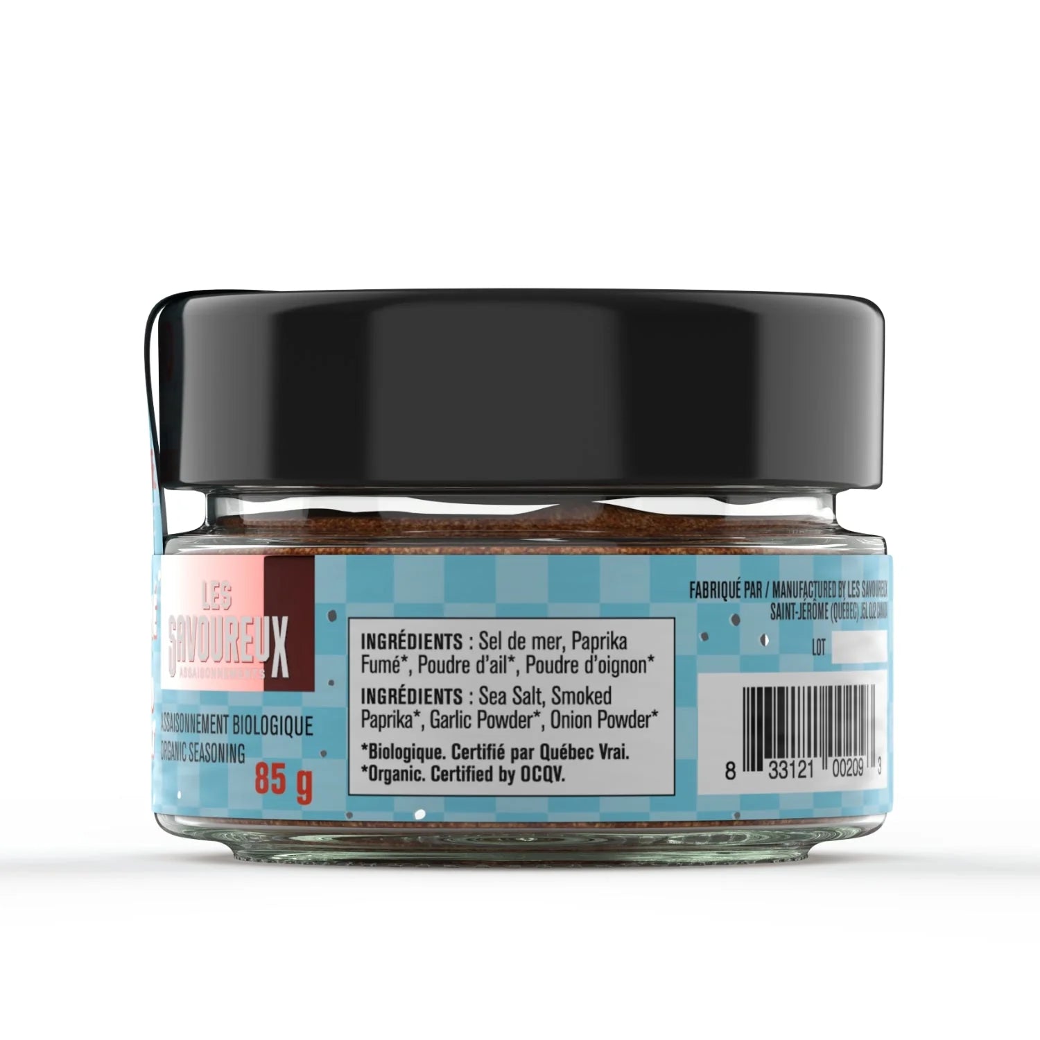 Ingrédients: Sel de mer, Paprika Fumé*, Poudre d'Ail*, Poudre d'Oignon*