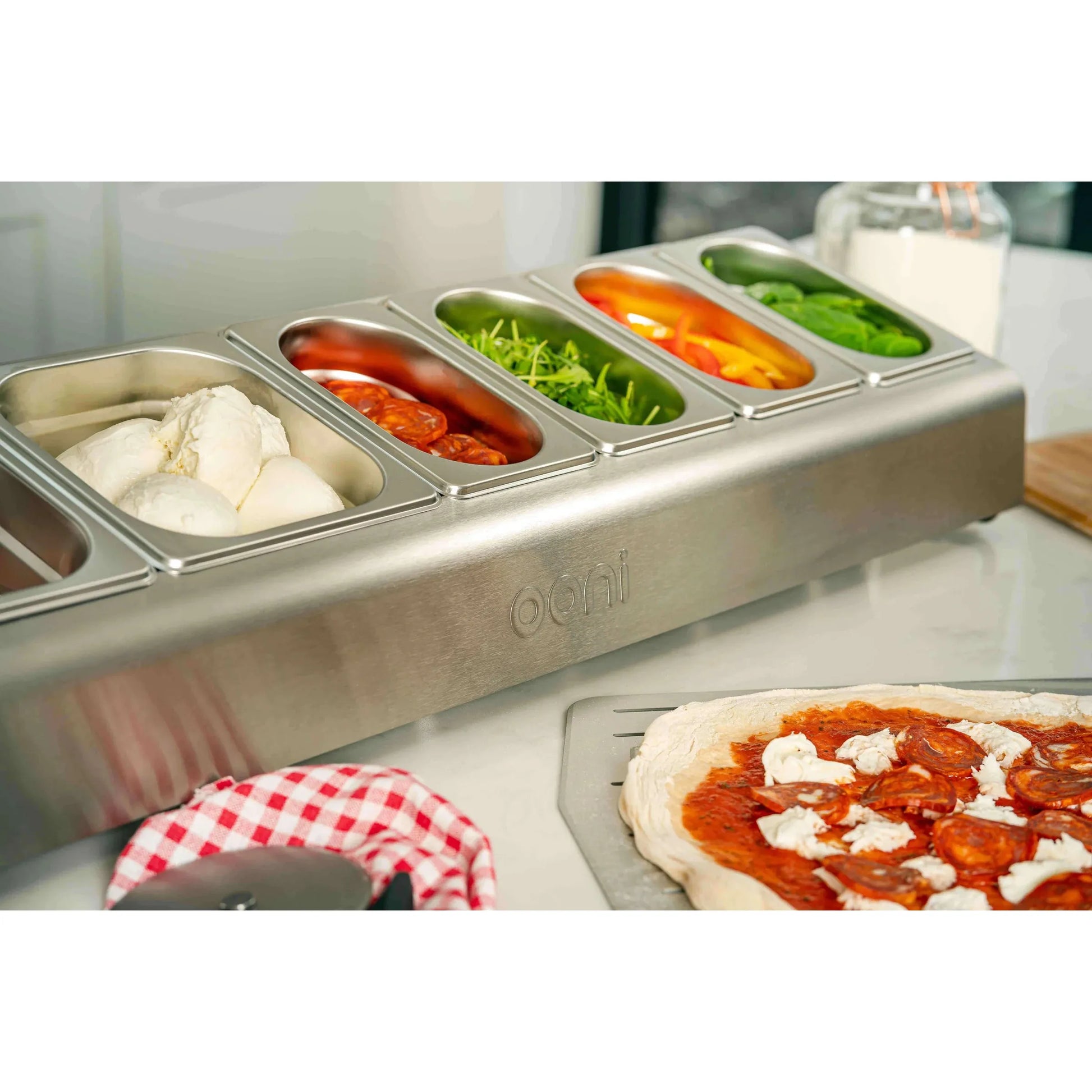 Comprend: 1 x station de garniture de pizza Ooni , 2 contenants de 1,6 L,