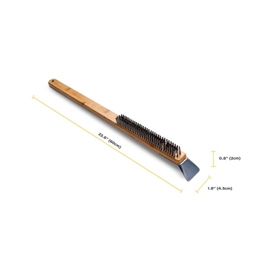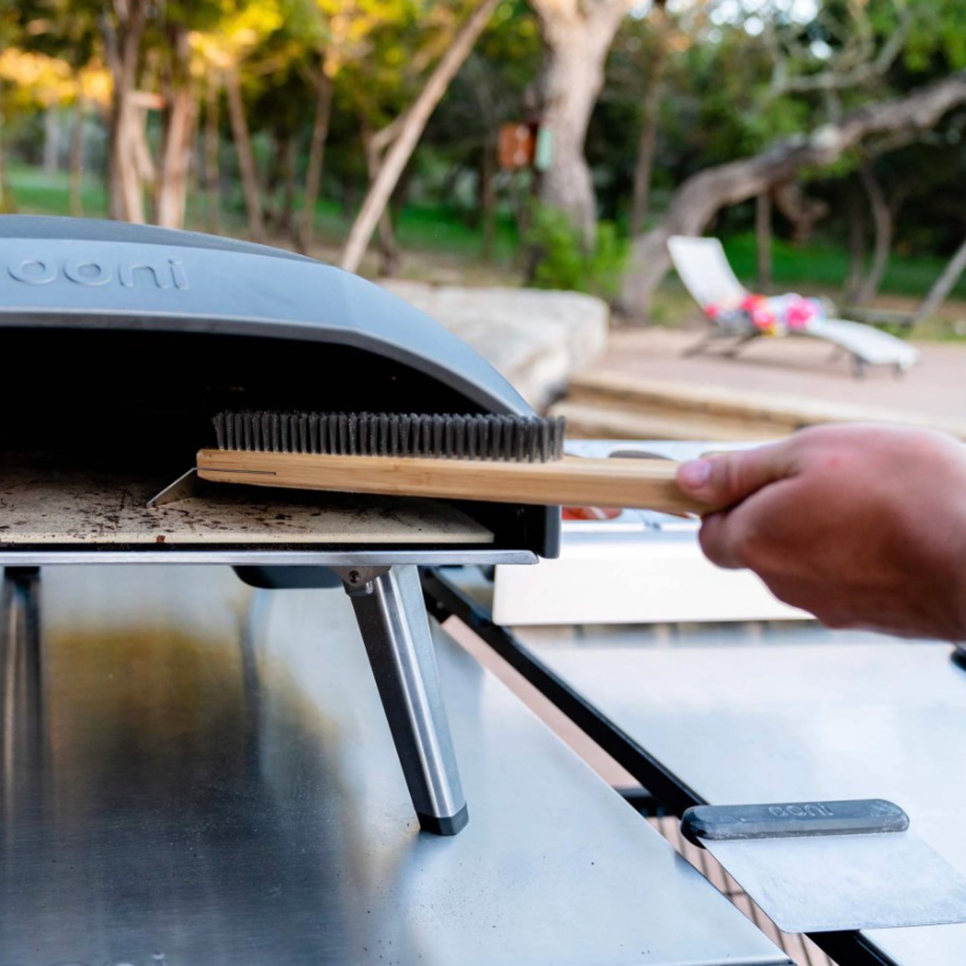 La brosse métallique pour four à pizza Ooni est un accessoire 2 en 1 : une brosse pour la plaque de cuisson en pierre et un grattoir, avec des poils et une raclette robustes en acier inoxydable. Avec son manche en bois confortable, c'est l'outil idéal pour nettoyer efficacement et rapidement votre four à pizza.