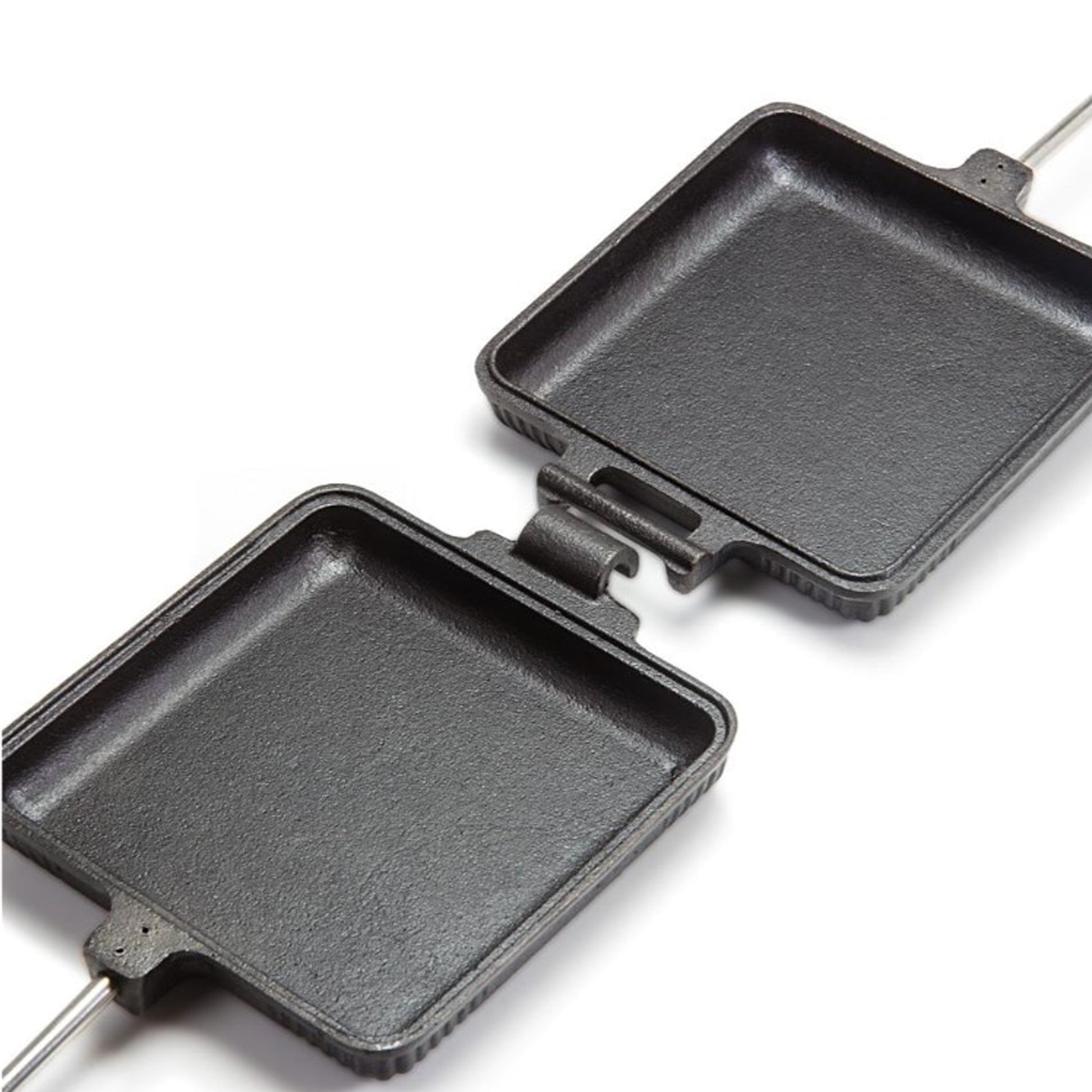 L’appareil à sandwich est parfait pour de délicieux toasts, bagels ou boulettes. Comme snack autour du feu de camp ou pour compléter à merveille ton menu pour barbecue : les sandwichs seront maintenant grillés dans les moules en fonte soit dans les braises du feu de camp, soit sur le barbecue. Les plaques à toast de l’appareil à sandwich conservant parfaitement la chaleur, le toast grillé est croustillant et sa garniture délicieusement juteuse.