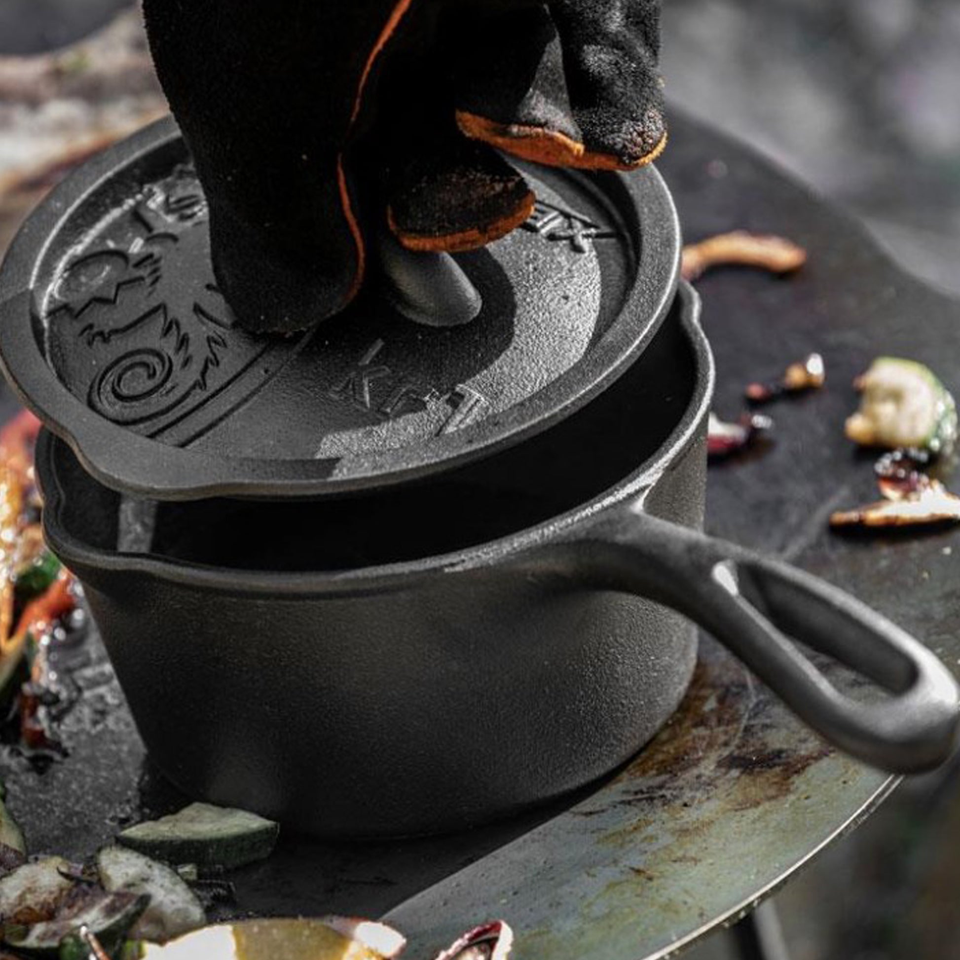 Une casserole bien en main et des arômes préservés : la casserole à fond plat est munie d’un couvercle et d’un manche qui facilite la manipulation sur un feu ouvert ou sur une cuisinière. Une marmite pour des saveurs décuplées : d’une part, les plats préparés dans des Marmites en fonte développent une touche particulière, car le goût original des ingrédients est préservé, d’autre part, parce que le couvercle « marque des points » avec une petite touche gourmande en plus : l’attrape-saveurs qui complète l’intérieur du couvercle.