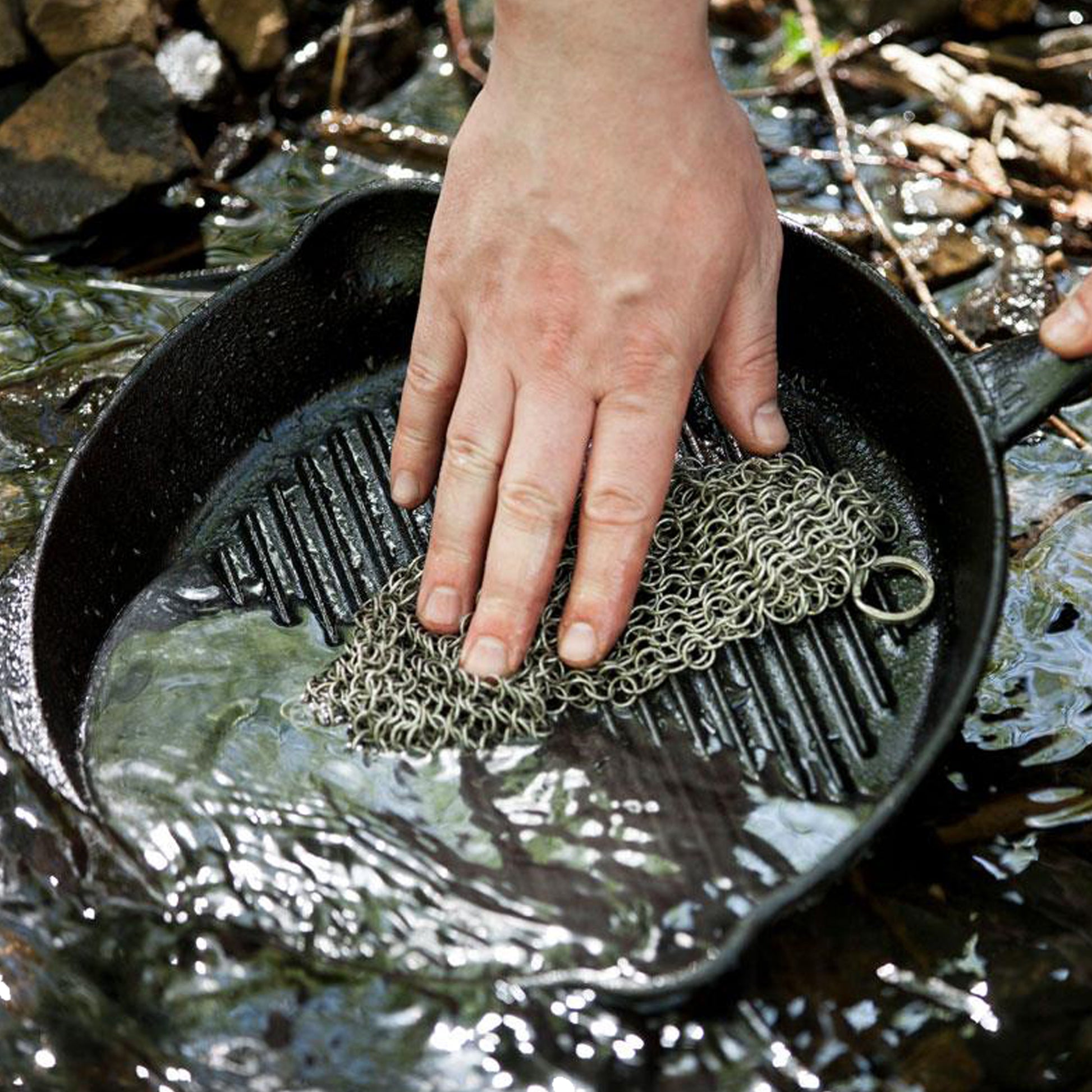 Après une longue séance de cuisson, le nettoyage de tes casseroles et poêles peut devenir un véritable défi. Grâce à la version XL de notre cotte de mailles éprouvée, il est maintenant beaucoup plus rapide : grâce à la grande surface des anneaux en acier inoxydable, ce spécialiste nettoie efficacement ta fonte et ton fer forgé sans détruire la précieuse patine. Ainsi, les restes de nourriture et de brûlé n'ont aucune chance.