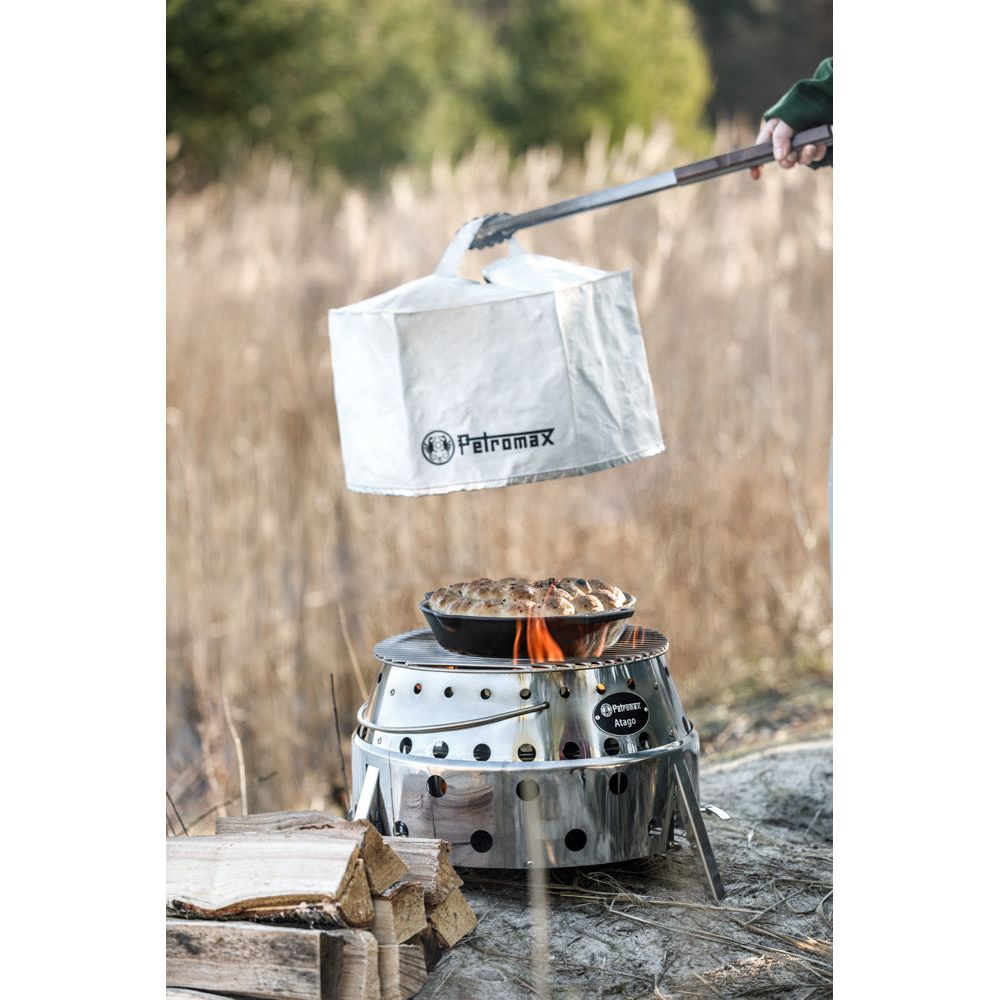 Le Dôme de cuisson en fibres résistantes à la chaleur et au feu transforme le Petromax Atago et les Marmites en fonte Petromax ft6 et ft9 en un four à chaleur tournante ou fumoir.