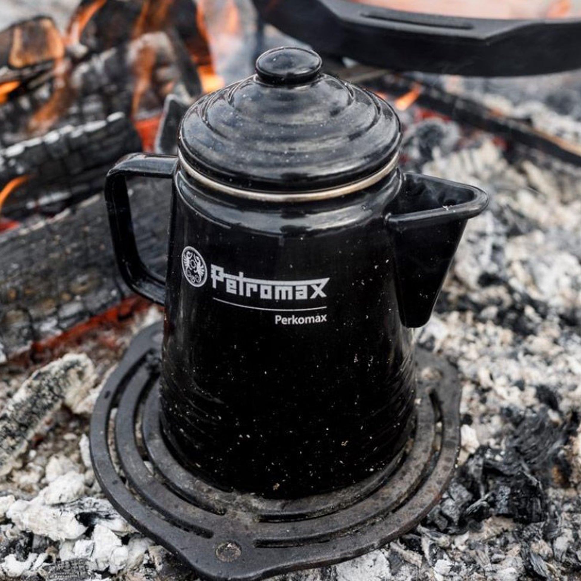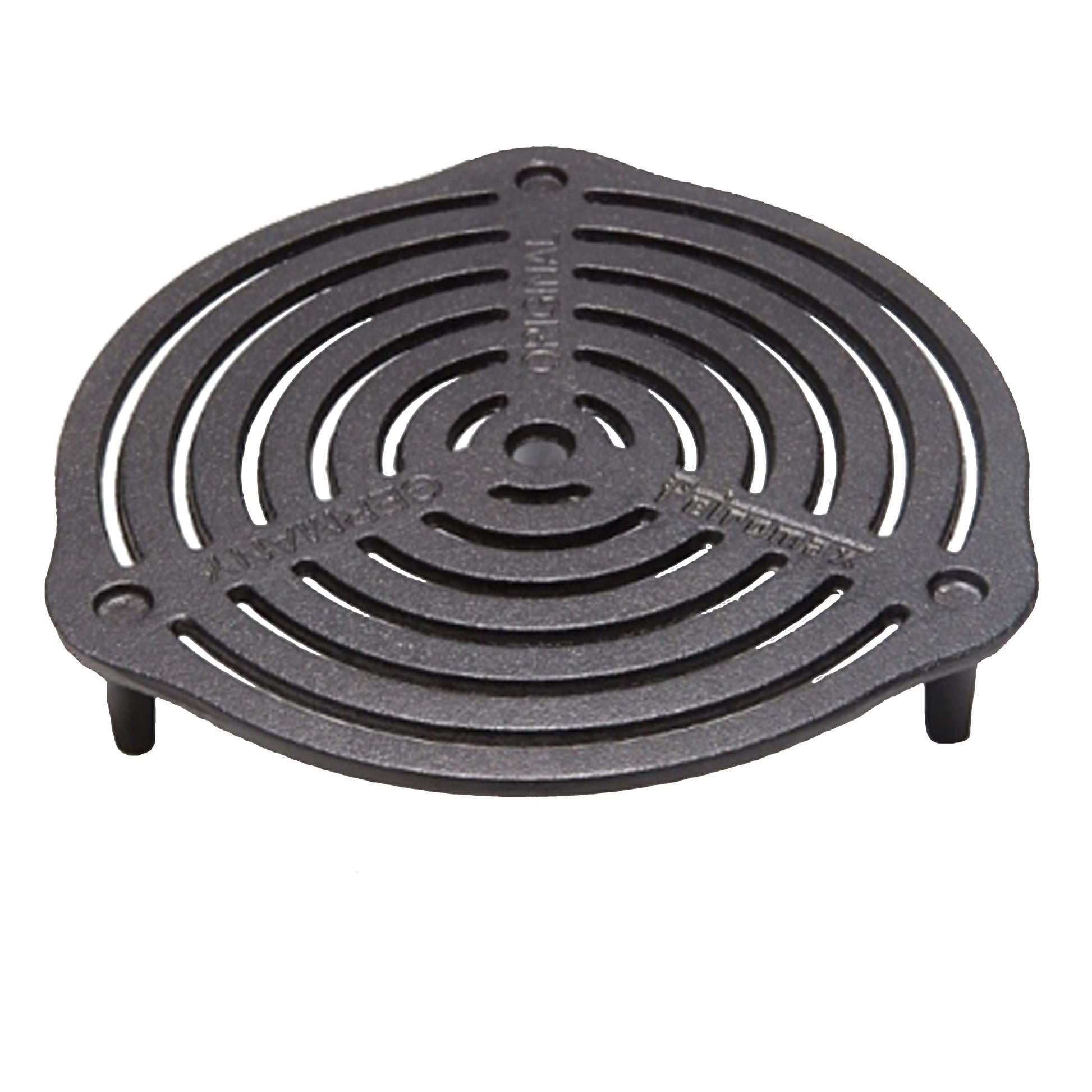 Pour cuire à la vapeur dans la marmite en fonte, il doit être placé un grille ou il suffit d'empiler deux grilles l'une sur l'autre. Si la grille est placée directement sur les braises, elle laisse la parfaite marque de la grillade sur ta viande en un rien de temps. Ou alors tu places la grille superposable dans le feu et tu l'utilises comme surface pour poser percolateurs, bouilloires ou marmites sans pieds. Sur une table, elle peut aussi te servir de dessous-de-plat pratique pour un récipient chaud.