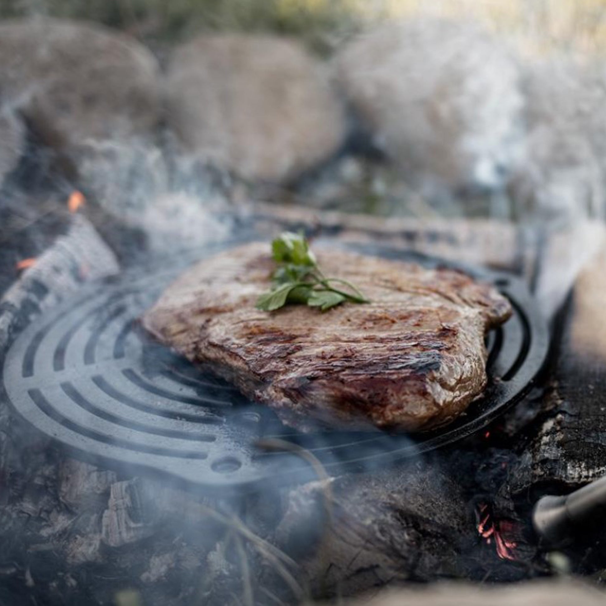 La grande grille en fonte superposable élargit non seulement la gamme Petromax, mais elle t’offre également une très belle expérience pour la cuisine en plein air : cette grande grille en fonte superposable pour la marmite en fonte à partir de la taille ft12 permet de conserver les aliments à cuire dans la marmite en fonte hors du bouillon de cuisson. Grâce aux propriétés idéales de la fonte et du trépied, la grande grille en fonte sert également à faire griller directement les aliments sur la braise ou à les faire mijoter dans la marmite.