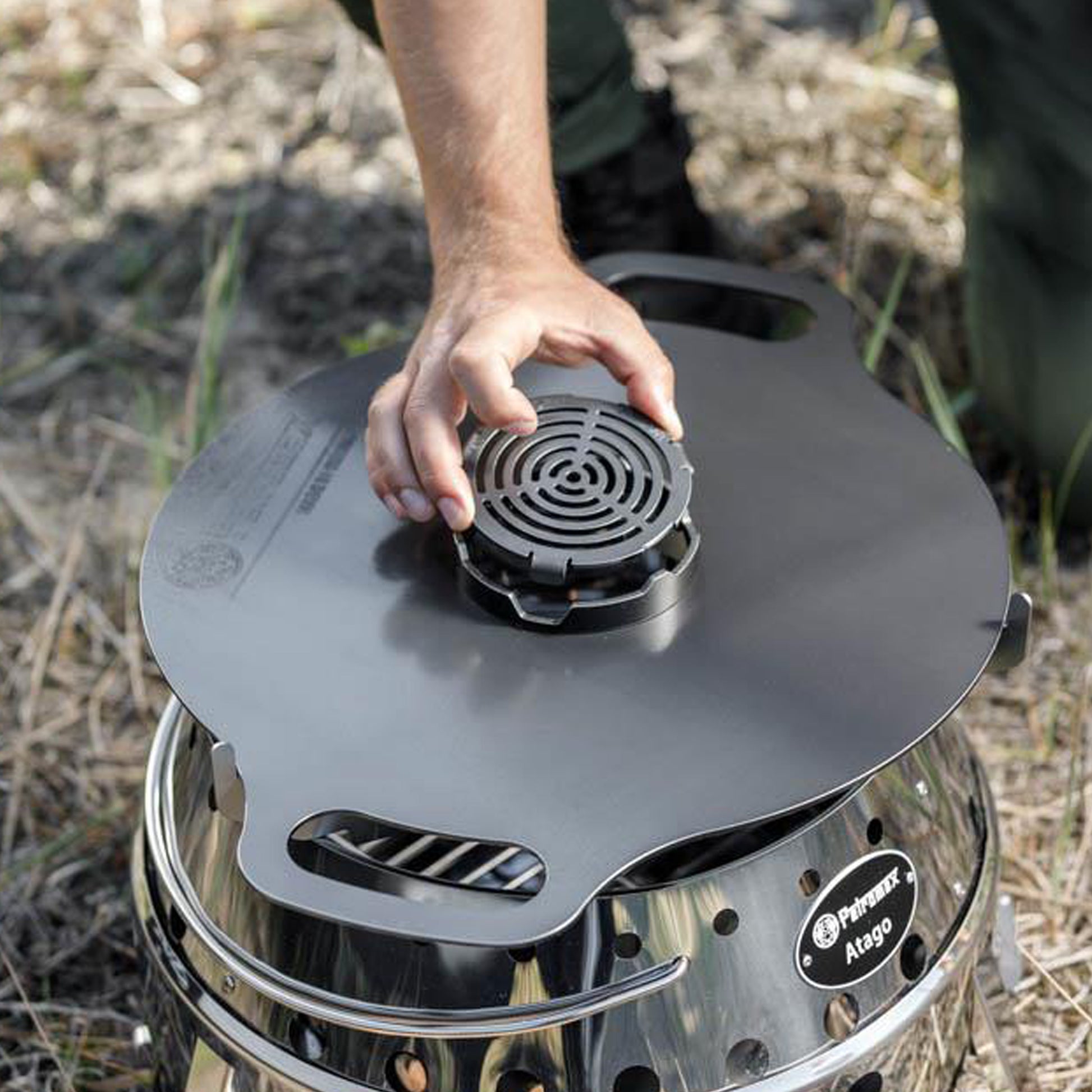 - S’adapte parfaitement à l'ouverture centrale de la Plaque de cuisson Atago et se combine de manière optimale avec le Support de cuisson pour Plaque de cuisson Atago.
