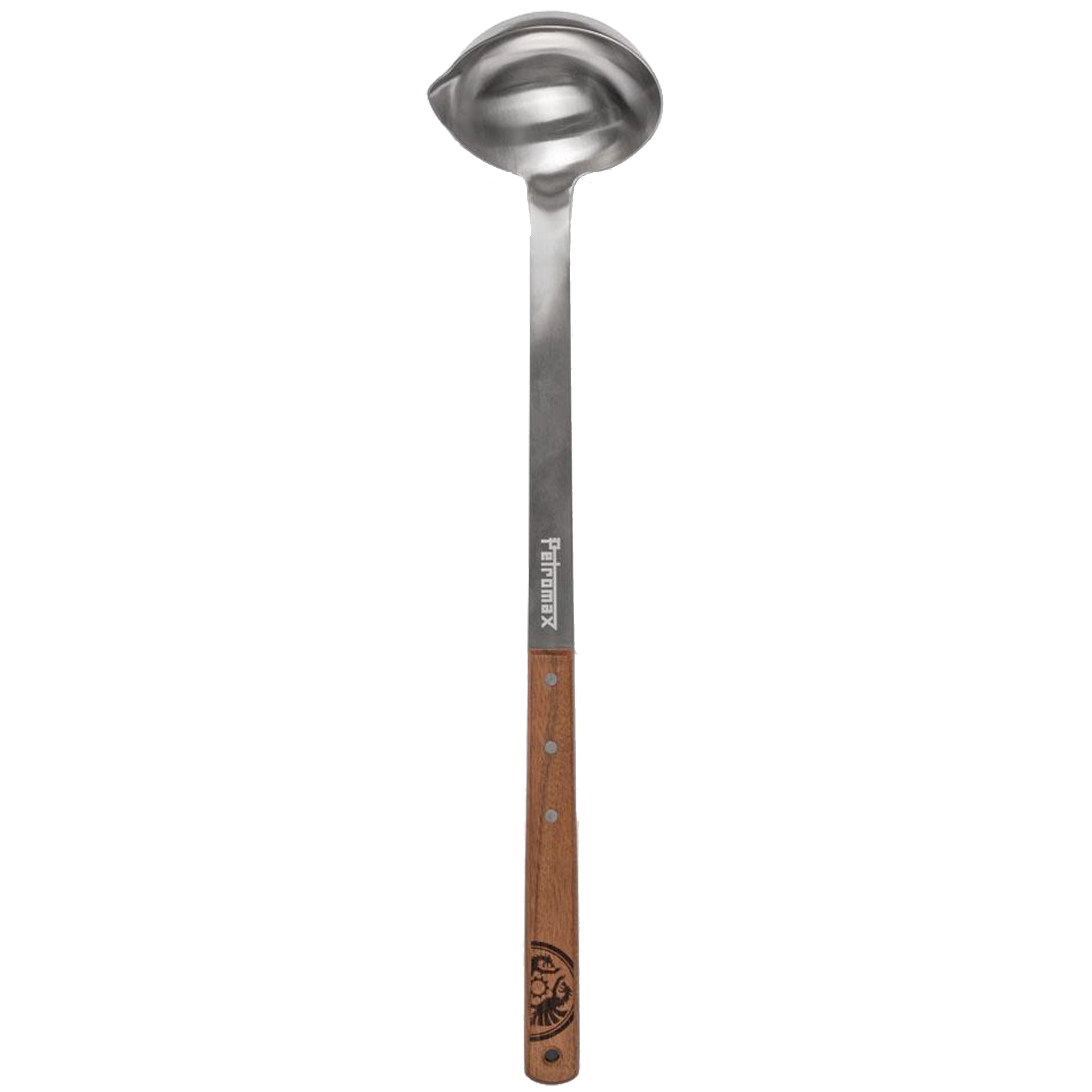 La Louche Petromax de haute qualité, gravée du fameux logo du dragon sur le manche en bois de noyer est un ustensile multifonctionnel pour la cuisine d'extérieur. Elle est disponible en 30 cm et 50 cm de long.