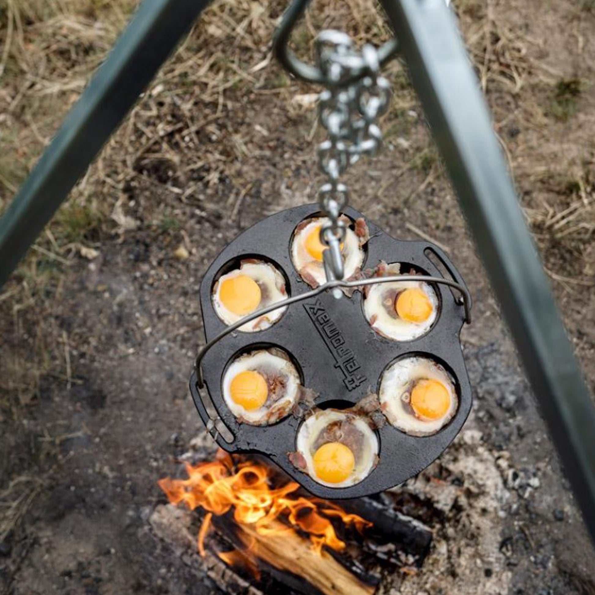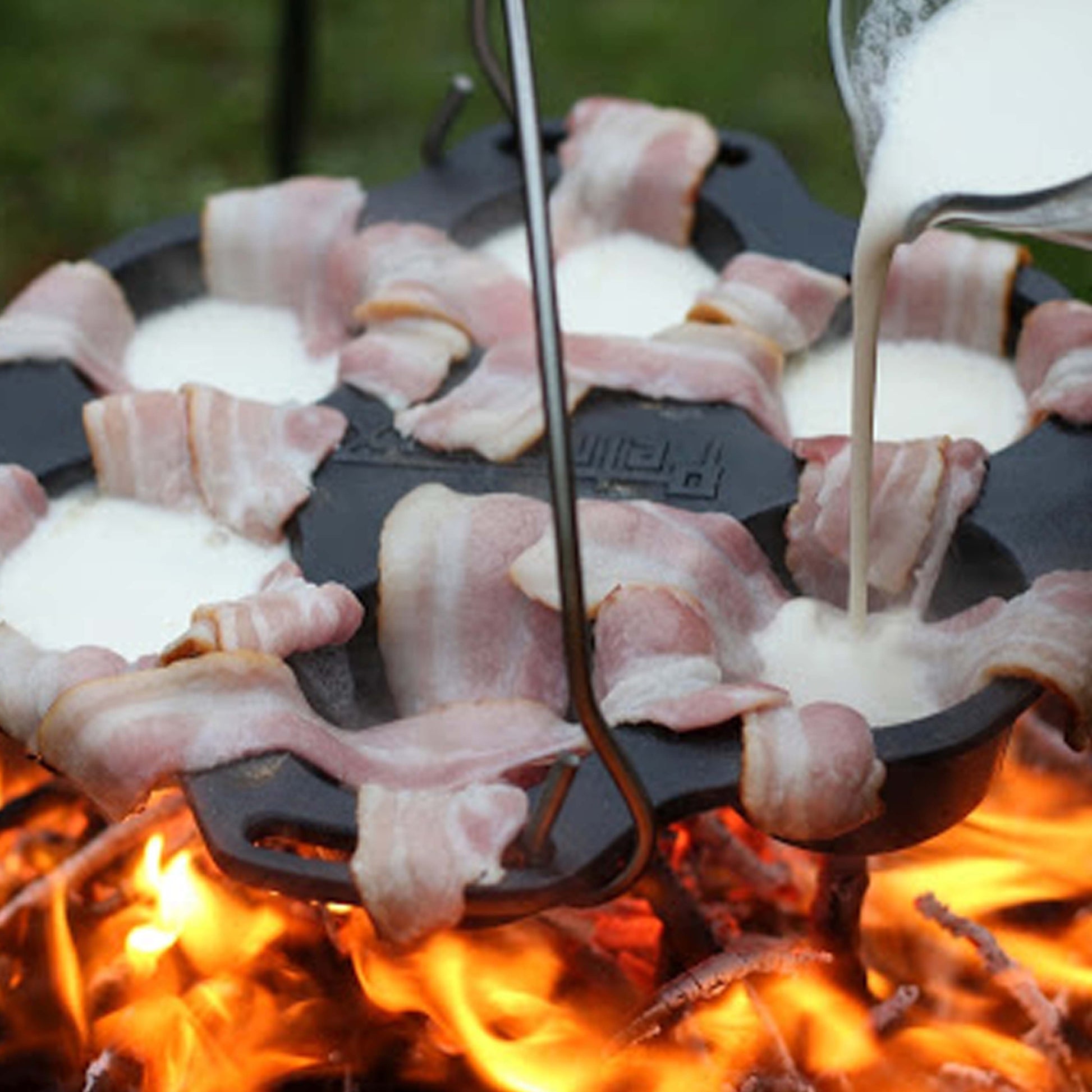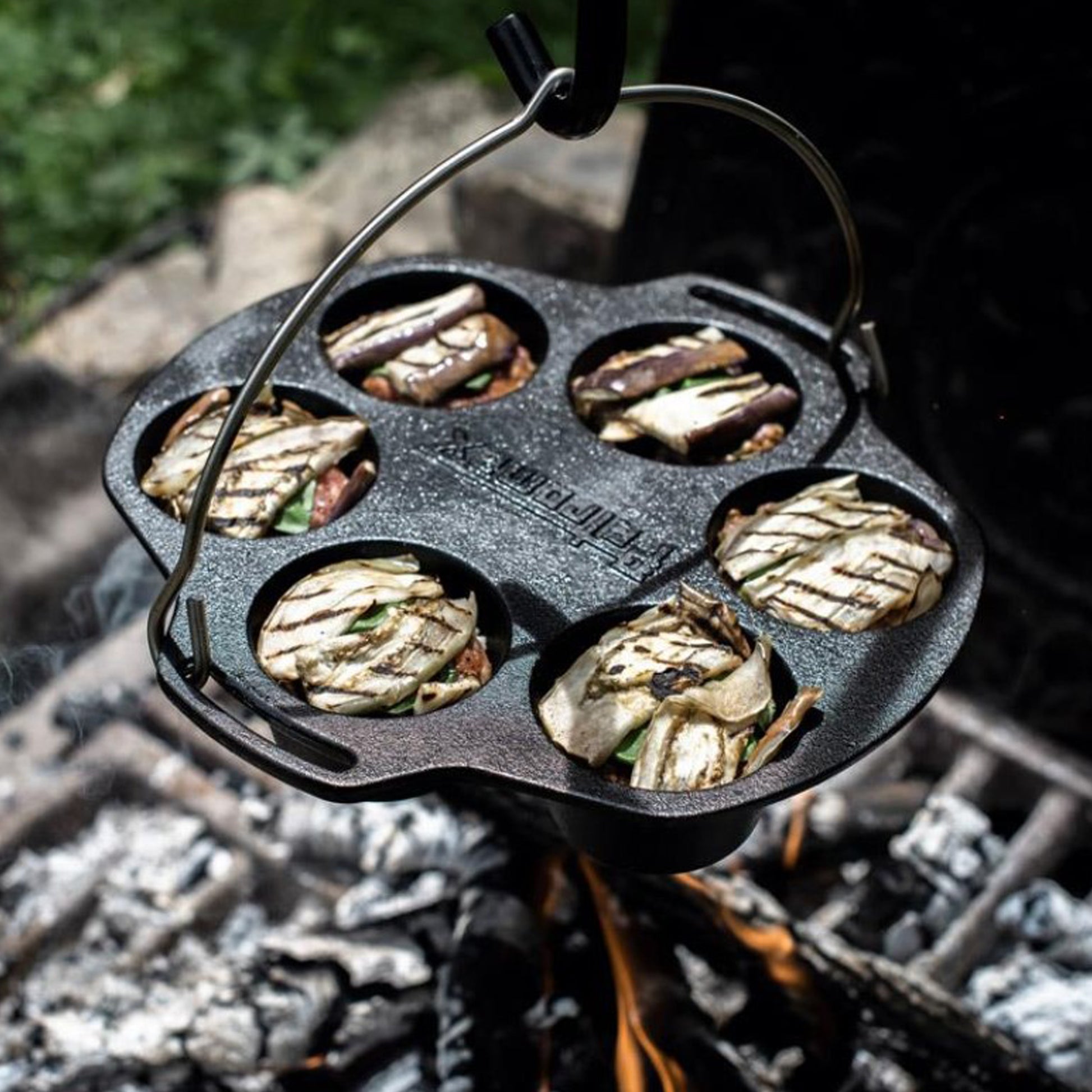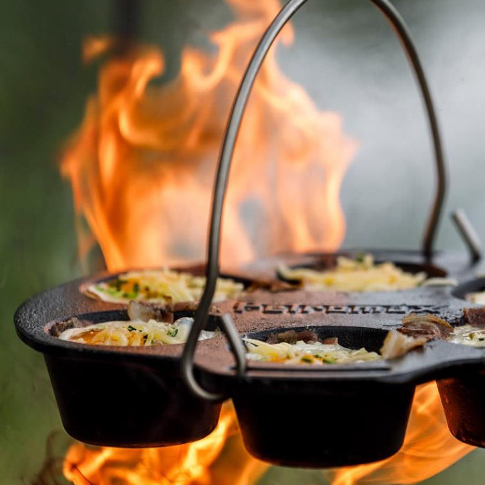 Avec ce moule à muffin, tu peux facilement profiter de pâtisseries délicieuses, aussi bien salées que sucrées, que ce soit dans la cuisine en plein air ou dans le four à la maison. Si tu veux utiliser le moule dans une Marmite en fonte ft9, nous te conseillons de placer le dessous-de-plat ou la grille superposable dans la marmite avant de poser le moule à muffins, car la fonte doit toujours être espacée pour qu'elle ne soit pas endommagée.