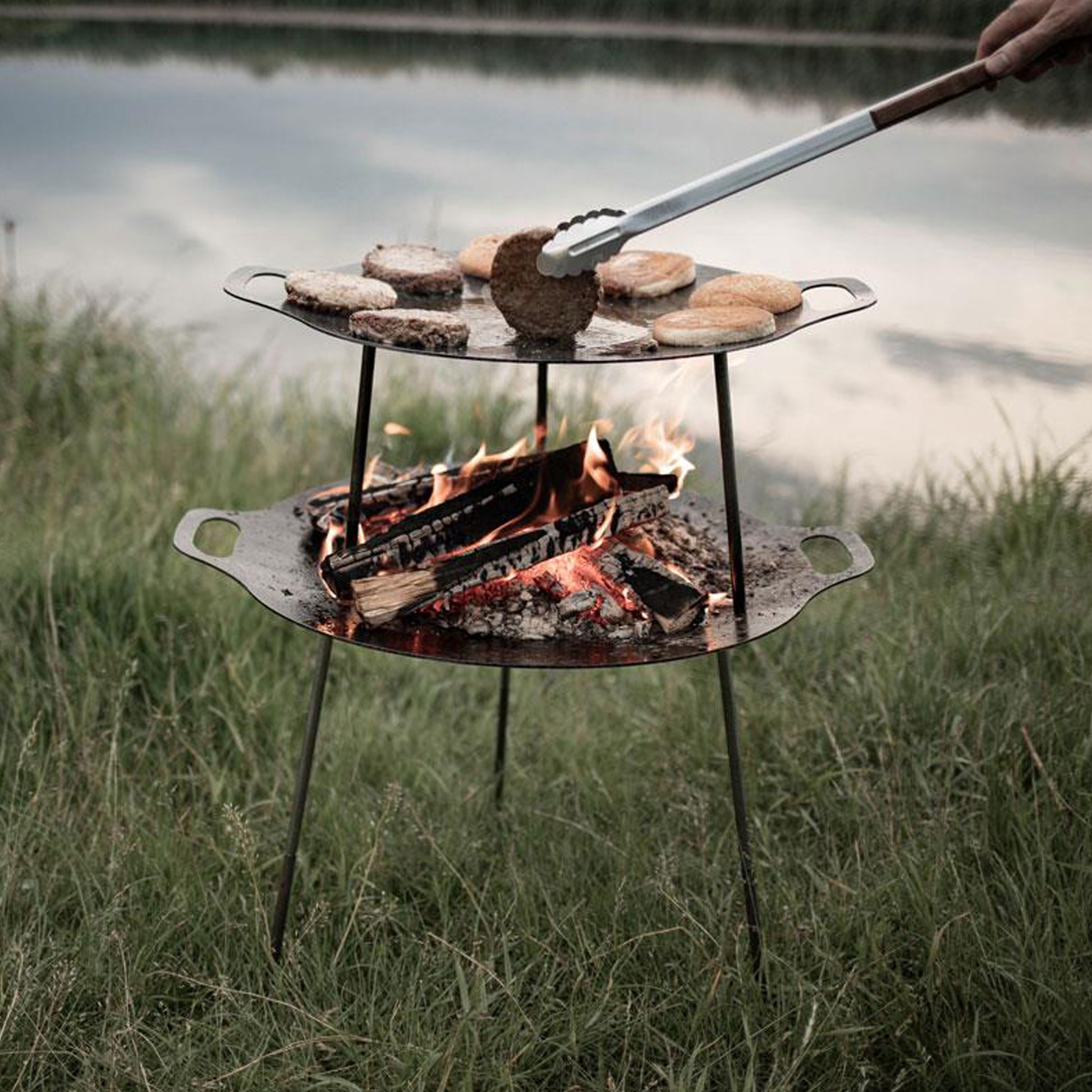 Grâce à la Plaque de cuisson et Brasero, vous disposez d’un équipement de base optimal pour vous restaurer ou vous chauffer, vous et votre équipe, lors de vos aventures en plein air, car elle peut également être utilisée comme Brasero. Vous pouvez ainsi faire des grillades à volonté, même sans foyer fixe à disposition, car les Plaques de cuisson et Brasero peuvent être empilées les unes sur les autres selon leur taille. Sur la plaque inférieure, vous allumez votre feu de barbecue et sur la plaque de cuisson supérieure, vous faites cuire vos grillades. La Plaque de cuisson et Brasero, au caractère minimaliste, vous offre les meilleures conditions pour réussir votre barbecue.