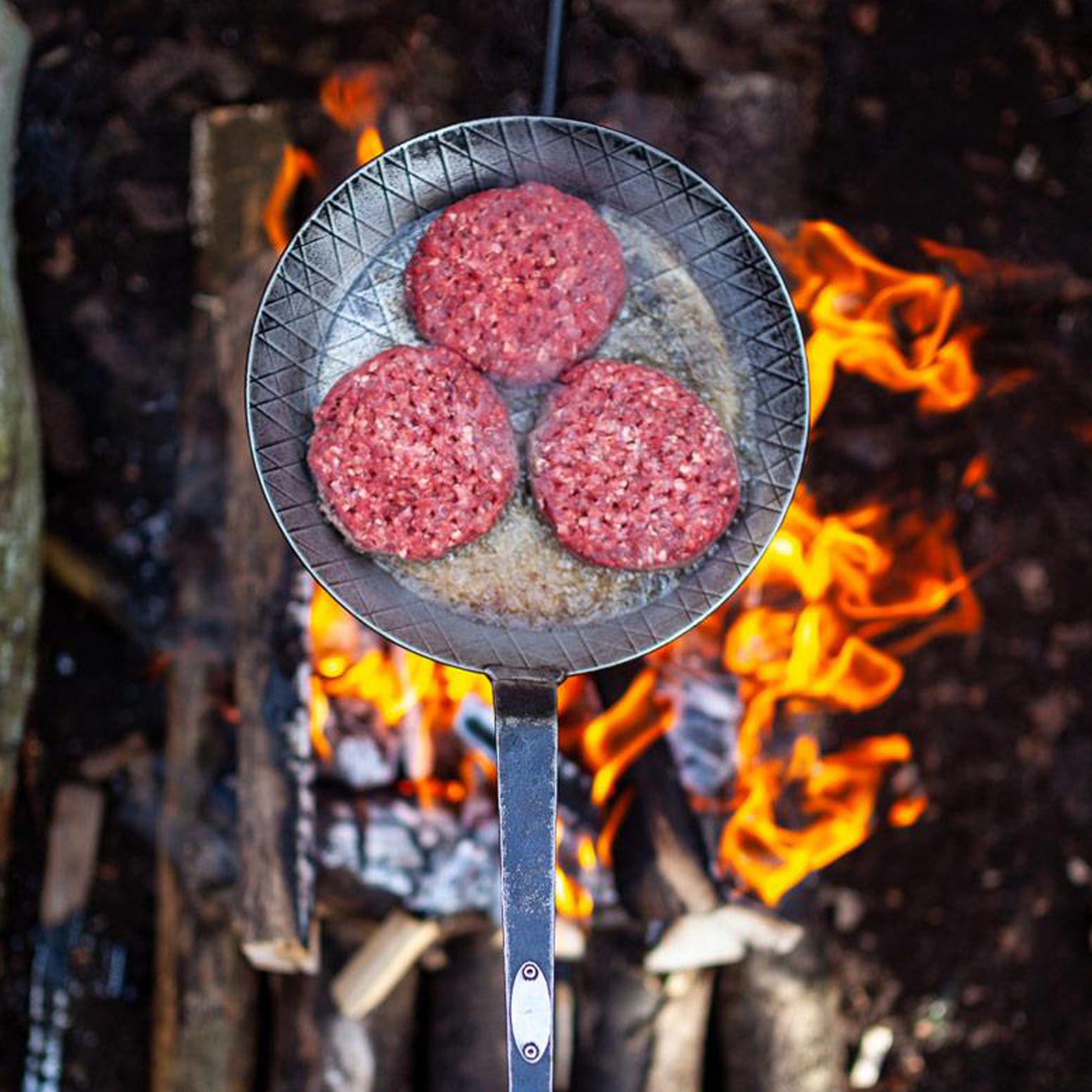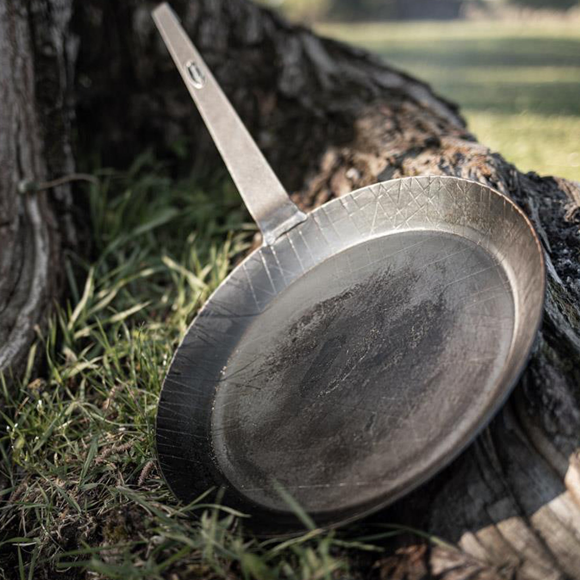 La Poêle en fer forgé convient à tous les types de cuisinières et aux feux de camp.