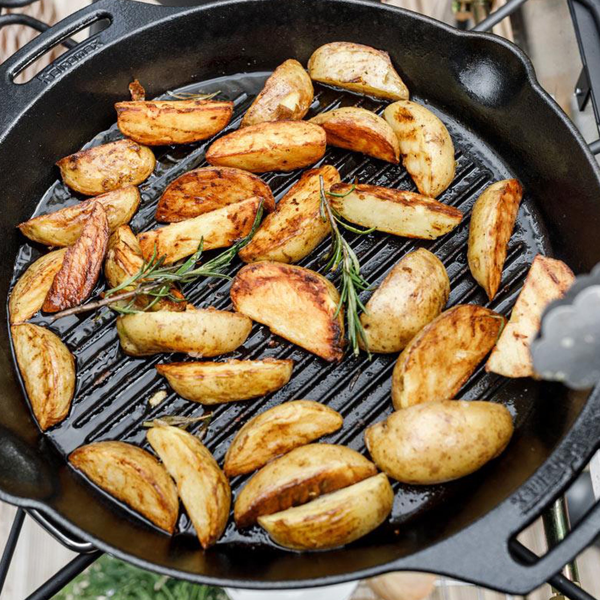 La Poêle à griller est compatible avec tout type de cuisinières et convient aux feux ouverts.