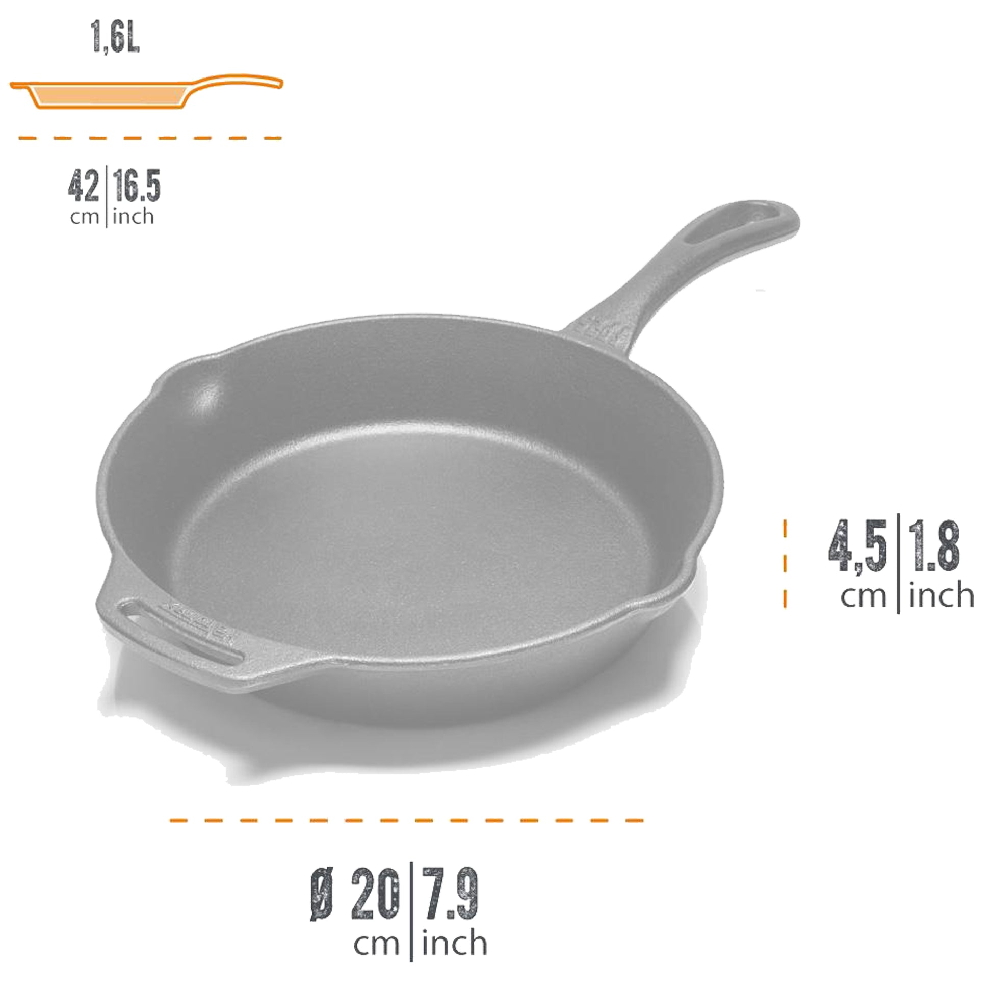 La fonte de haute qualité avec son excellente répartition de la chaleur est immédiatement prête à l'emploi et facile à nettoyer grâce à sa surface prétraitée (culottée). La poêle durable et robuste possède un effet antiadhérent naturel, une caractéristique qui s'améliorera à chaque usage par la formation d'une couche protectrice. De plus, la fonte conservant bien la chaleur, vous pourrez servir vos plats directement dans la poêle.