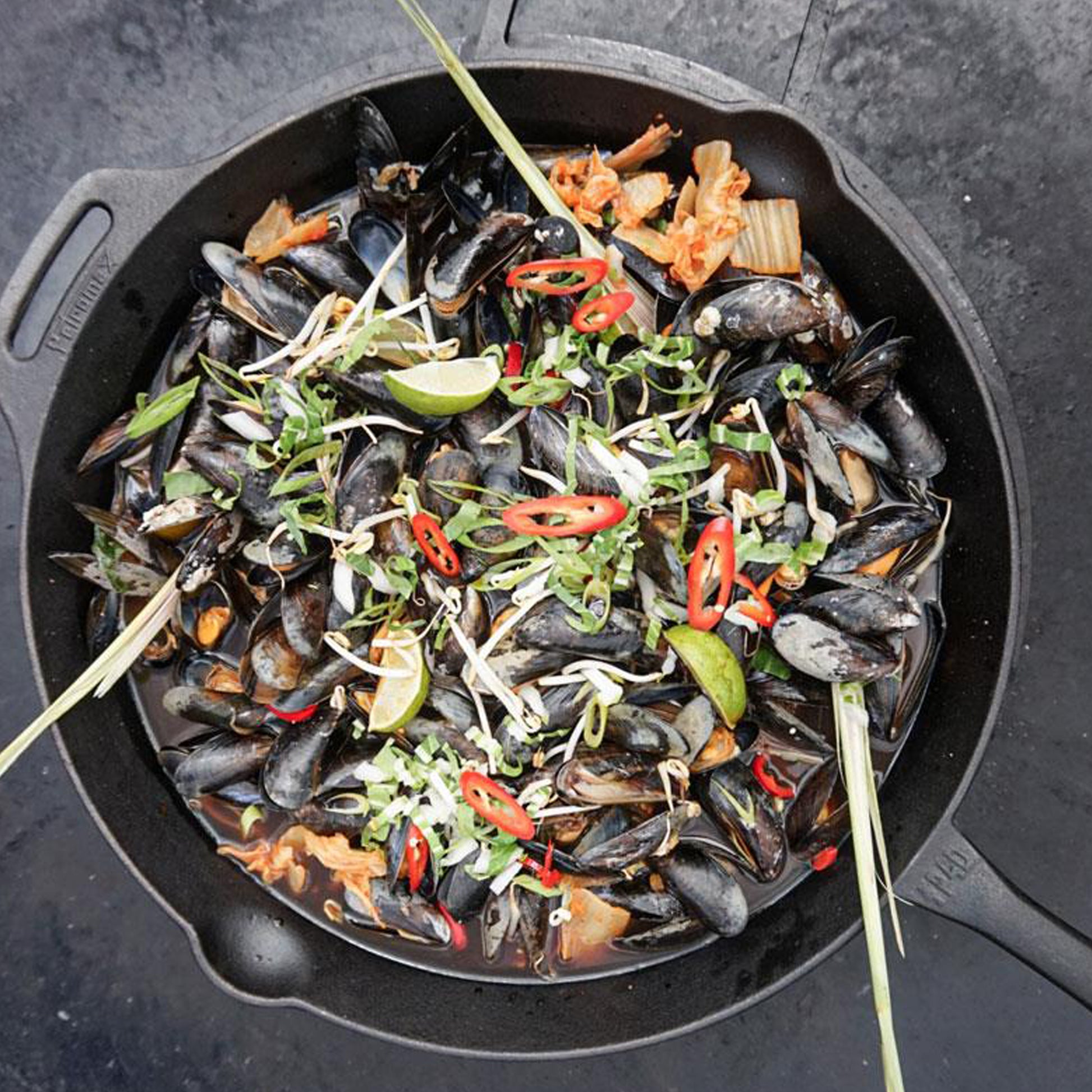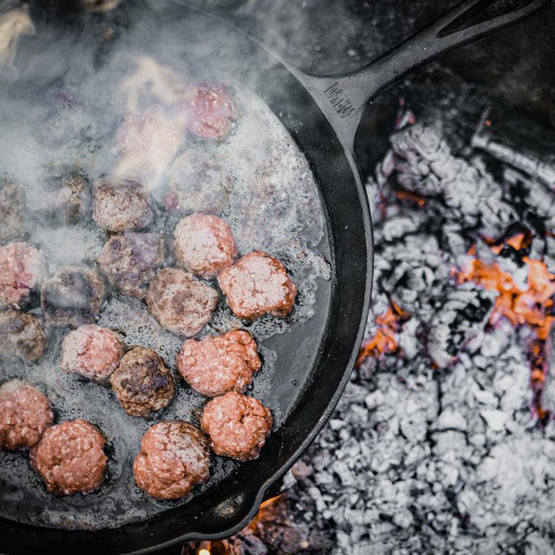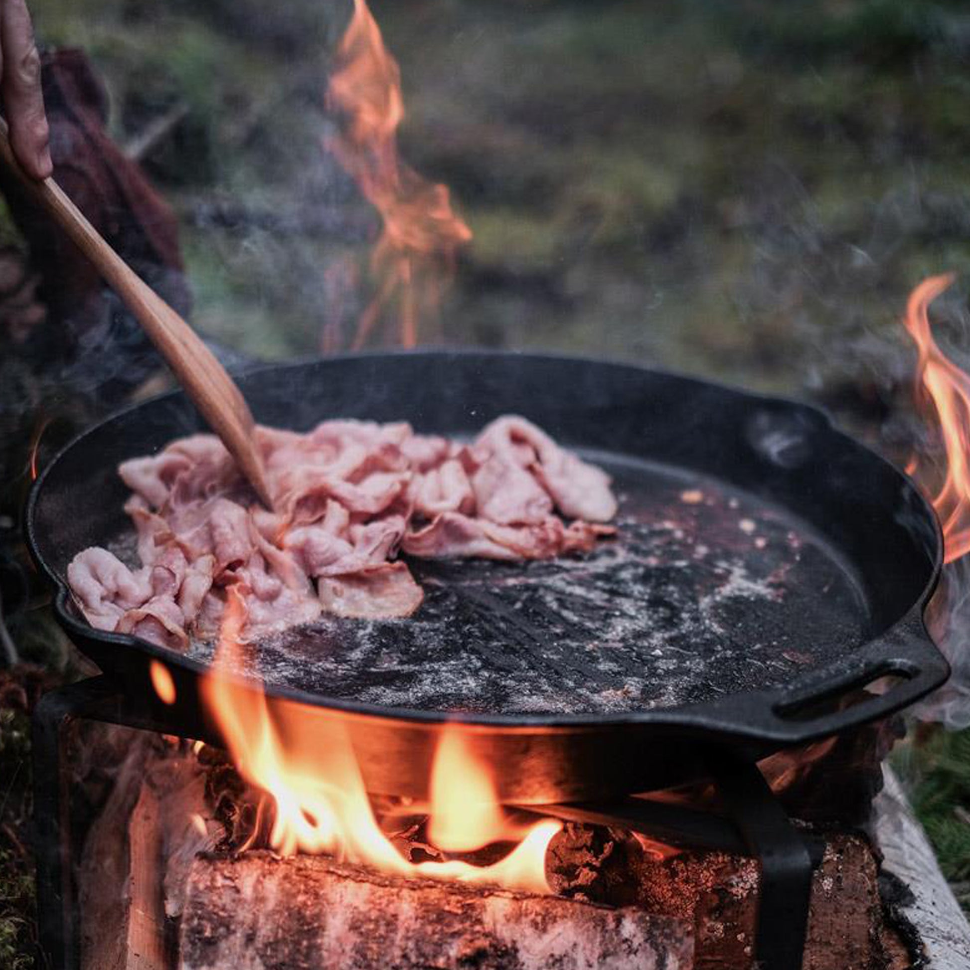 La poêle en fonte n’est pas uniquement utilisable sur une cuisinière électrique ou à induction, sur une plaque a gaz ou dans un four. Mais aussi en plein air sur un feu de camp ou un gril adéquat. Faire braiser, revenir ou sauter des aliments – dans la poêle en fonte, chaque plat est un délice.