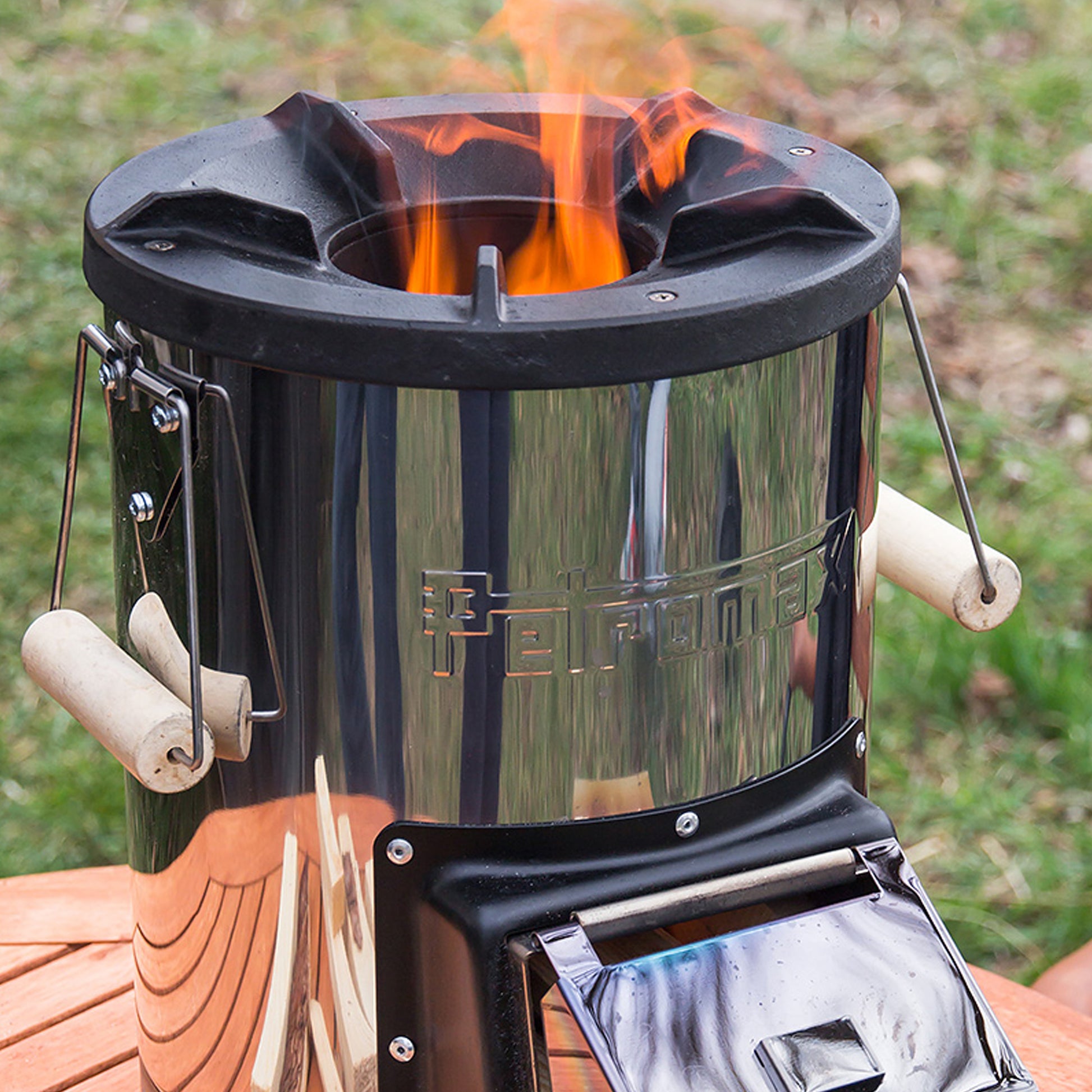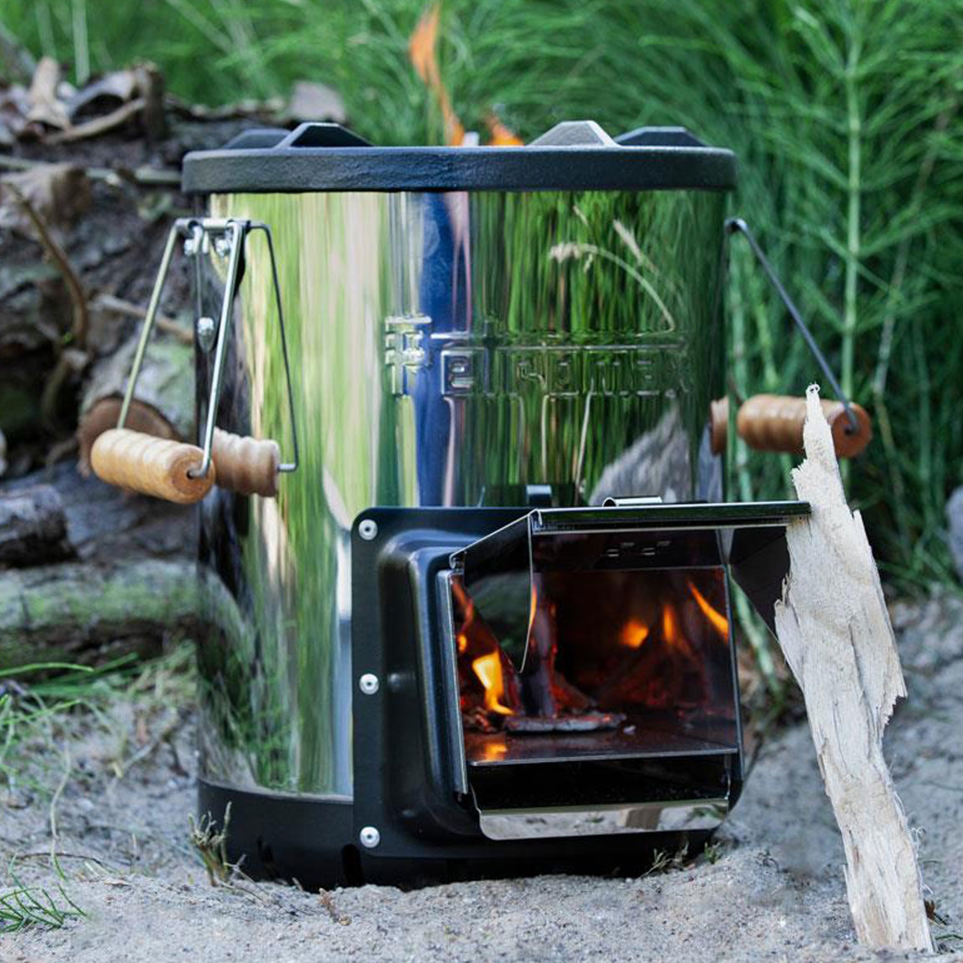 Démarrez votre aventure indépendante sans électricité avec le poêle-fusée et profitez de tous les avantages de cette station de cuisson très performante. Le four-fusée alimente rapidement et facilement vos ustensiles de cuisine et satisfait votre petite ou grande faim en un rien de temps.
