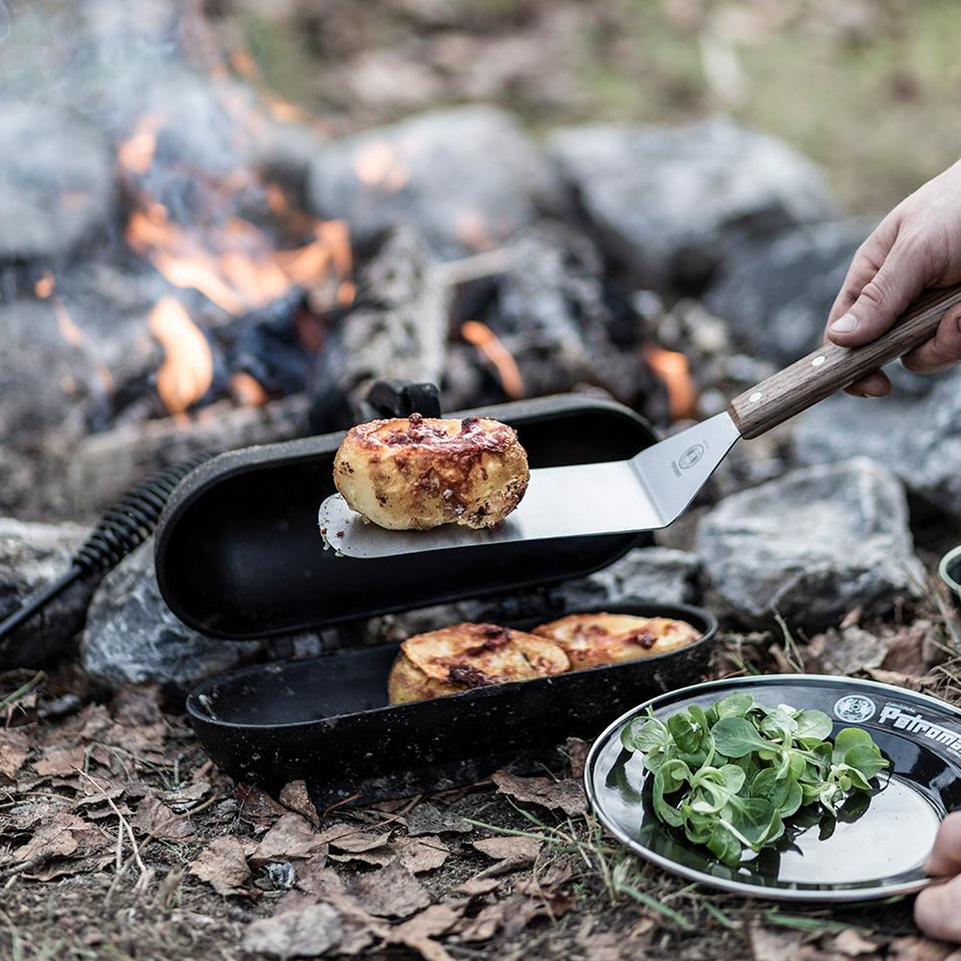 Des pommes de terre cuites sur la braise, en plat principal ou en accompagnement d’un steak juteux, constituent un repas sur mesure pour les aventuriers. La Rôtissoire à pommes de terre, en fonte, vous permet de préparer des pommes de terre et des légumes au goût rôti si caractéristique.