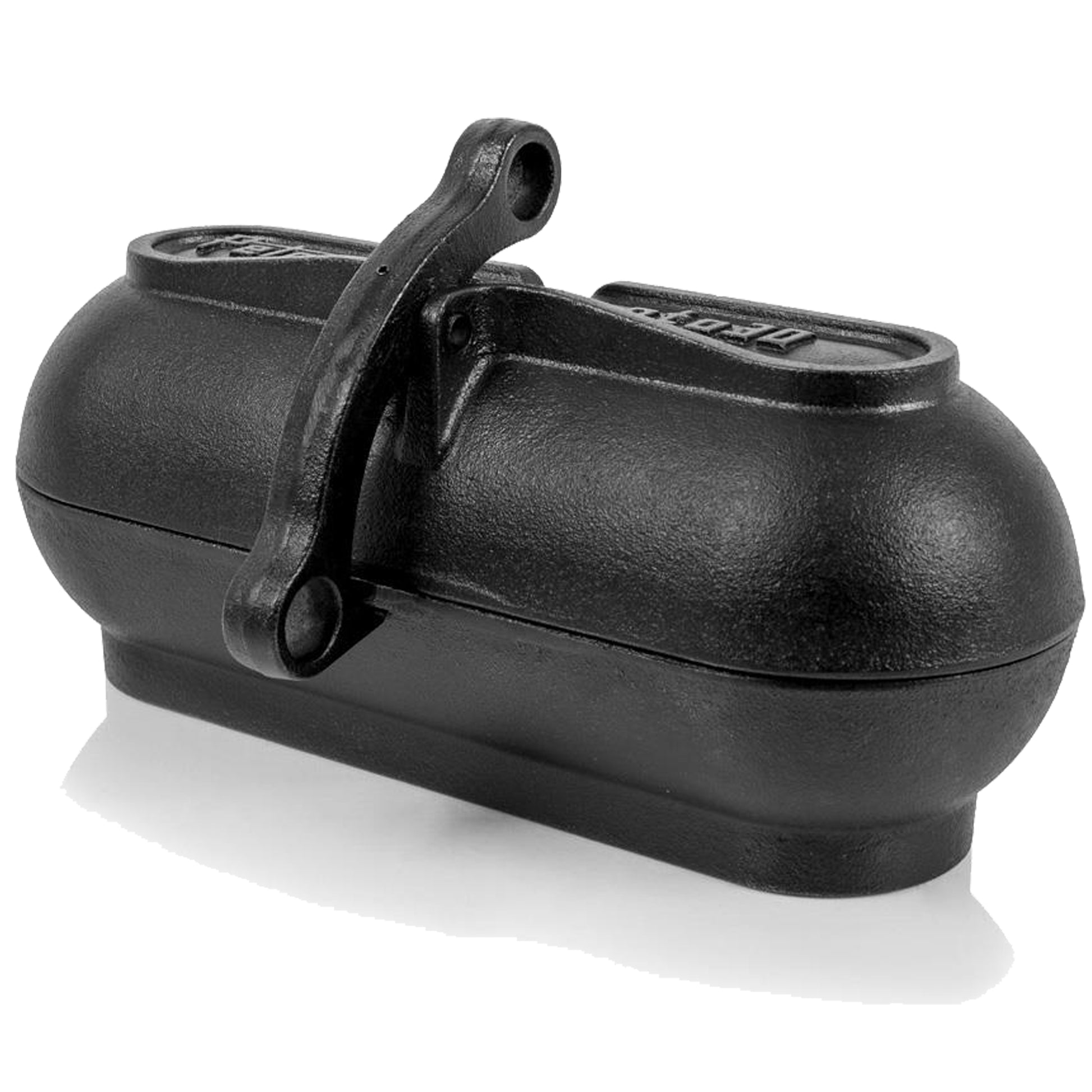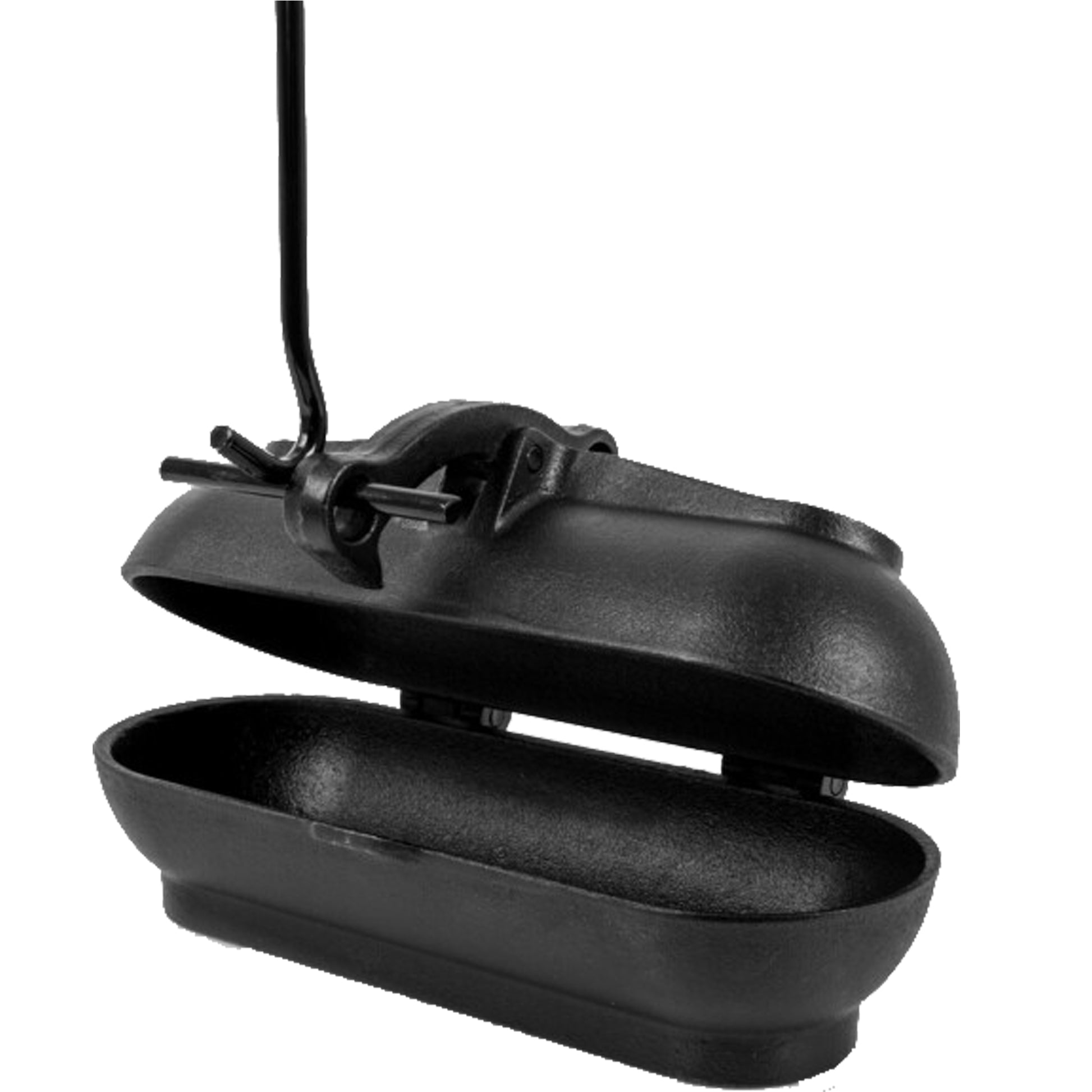 La Rôtissoire à pommes de terre, en fonte, se distingue par son astucieux mécanisme : la fermeture à bascule, spécialement conçue, verrouille les deux parties du moule dès lors que vous le soulevez avec un lève-couvercle. Ainsi, vous pouvez retirer votre Rôtissoire chaude du feu ou la déplacer sans risque. En insérant le Lève-couvercle dans l’œillet inférieur du levier, vous ouvrez le couvercle de la Rôtissoire afin de retirer les pommes de terre fumantes.