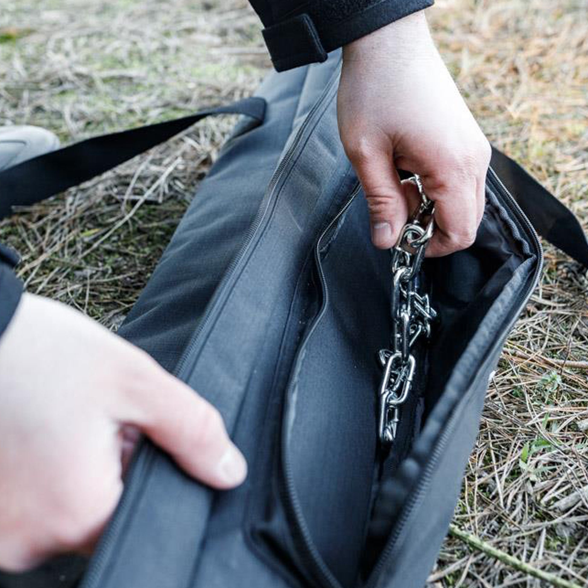 Le Sac de transport pour Trépied de suspension Petromax permet de transporter votre système de cuisson proprement et en toute sécurité lorsque vous partez à l’aventure. Le trépied et ses pieds effilés sont idéalement protégés, car ce sac est muni d’un fond renforcé et de fixations scratch. Les poignées en similicuir facilitent le transport du sac qui se porte confortablement sur l’épaule. De plus, la poche zippée extérieure offre suffisamment d’espace de rangement pour la chaîne, les crochets et d’autres accessoires.
