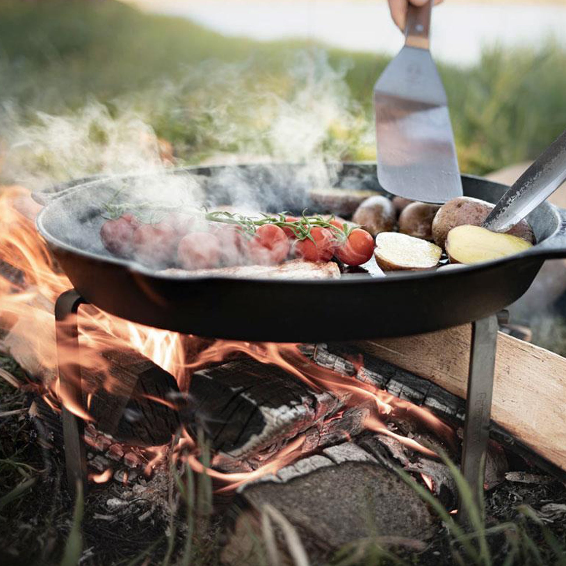 Le Trépied de cuisson pour feu repliable de Petromax en acier est le parfait complément pour la cuisine en plein air. Il supporte sans danger de lourdes poêles et casseroles et fait de votre foyer un endroit stable pour cuisiner. Grâce aux ouvertures dans chacun de ses pieds, le trépied de cuisson peut être stabilisé au sol à l’aide de sardines de tente. Avec le Trépied de cuisson Petromax, les constructions bancales de la cuisine en plein air ne sont plus qu’un souvenir!