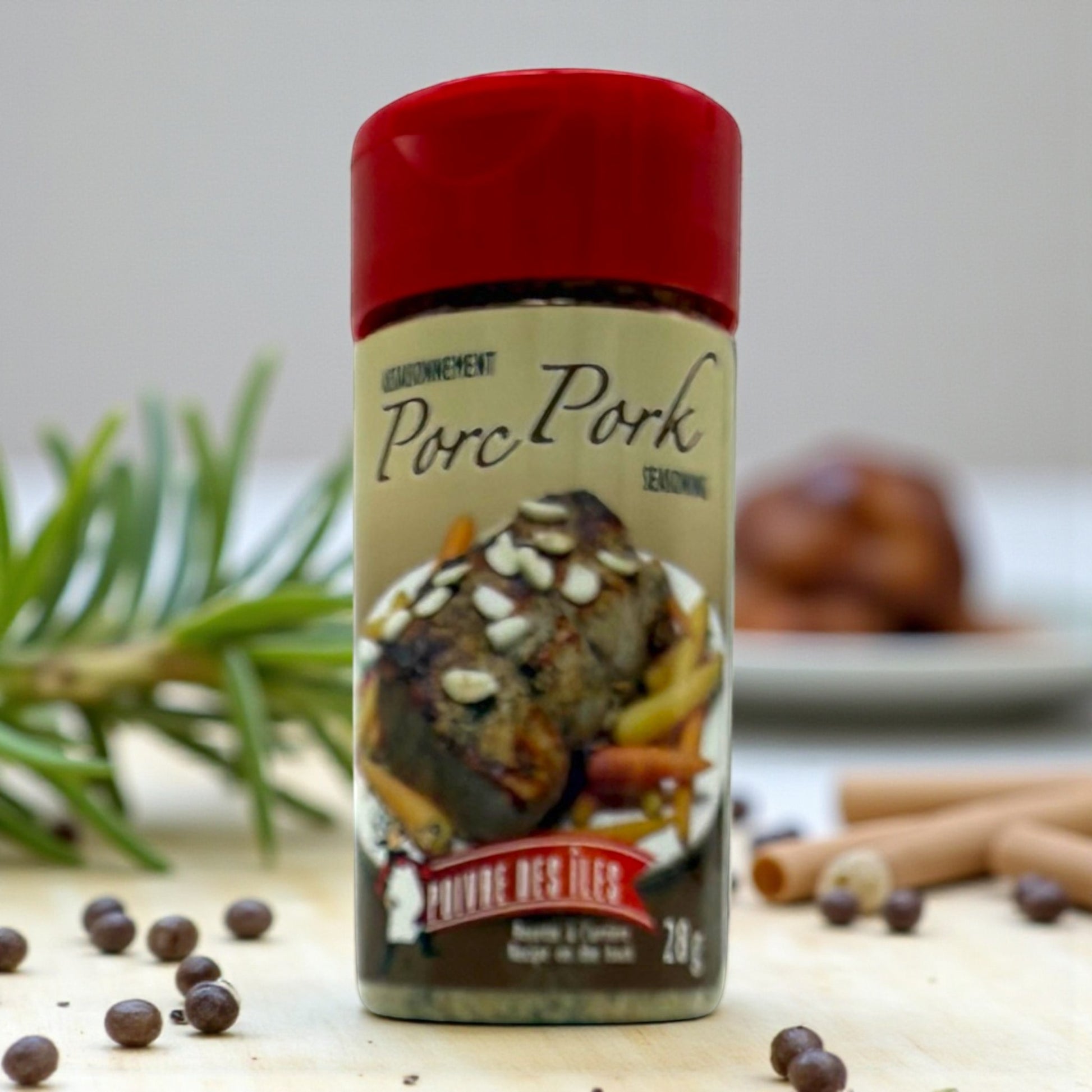 Apportez une explosion de saveurs à vos plats de porc avec l’assaisonnement Porc Poivre des Îles. Ce mélange riche et aromatique combine la chaleur du poivre, la douceur des herbes et une subtile touche d’ail pour créer un équilibre parfait entre puissance et finesse.