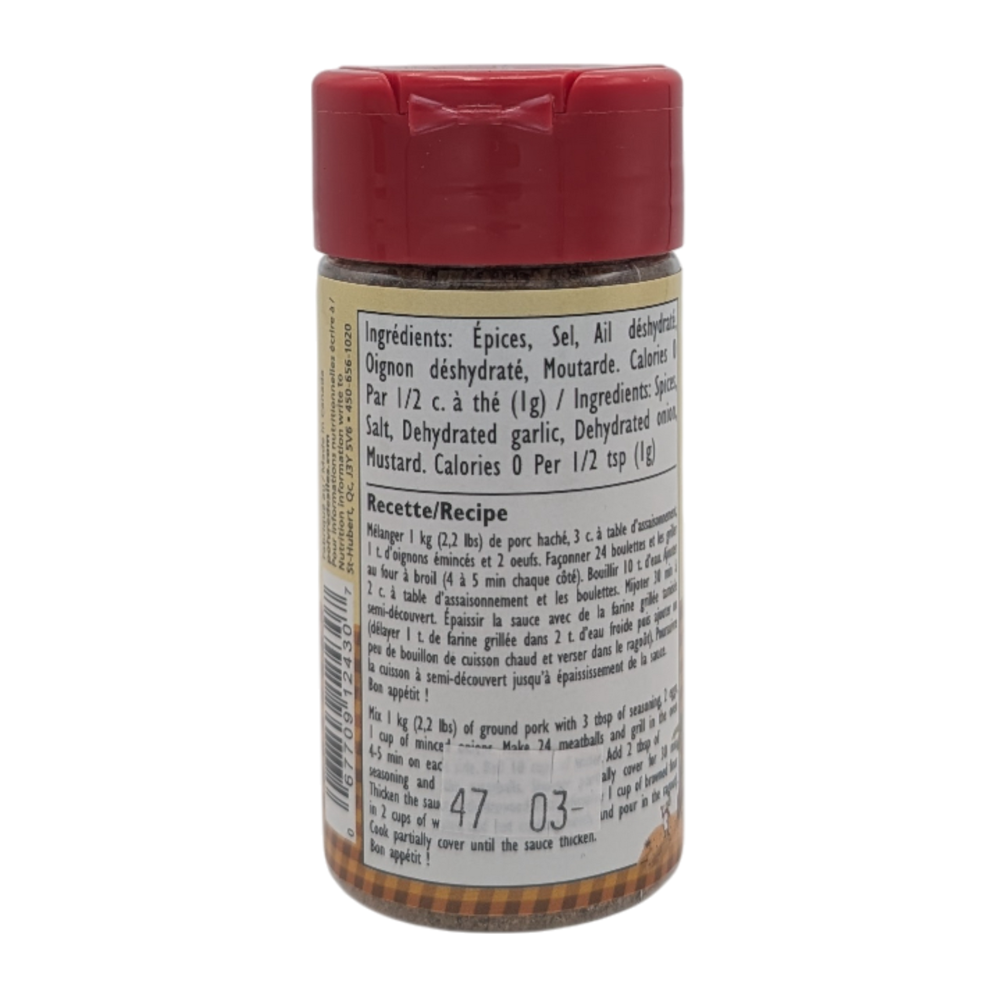 • Épices • Sel • Ail déshydraté • Oignon déshydraté • Moutarde