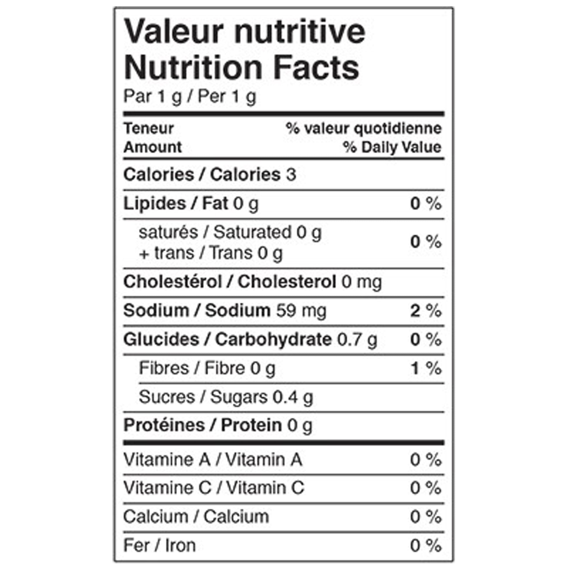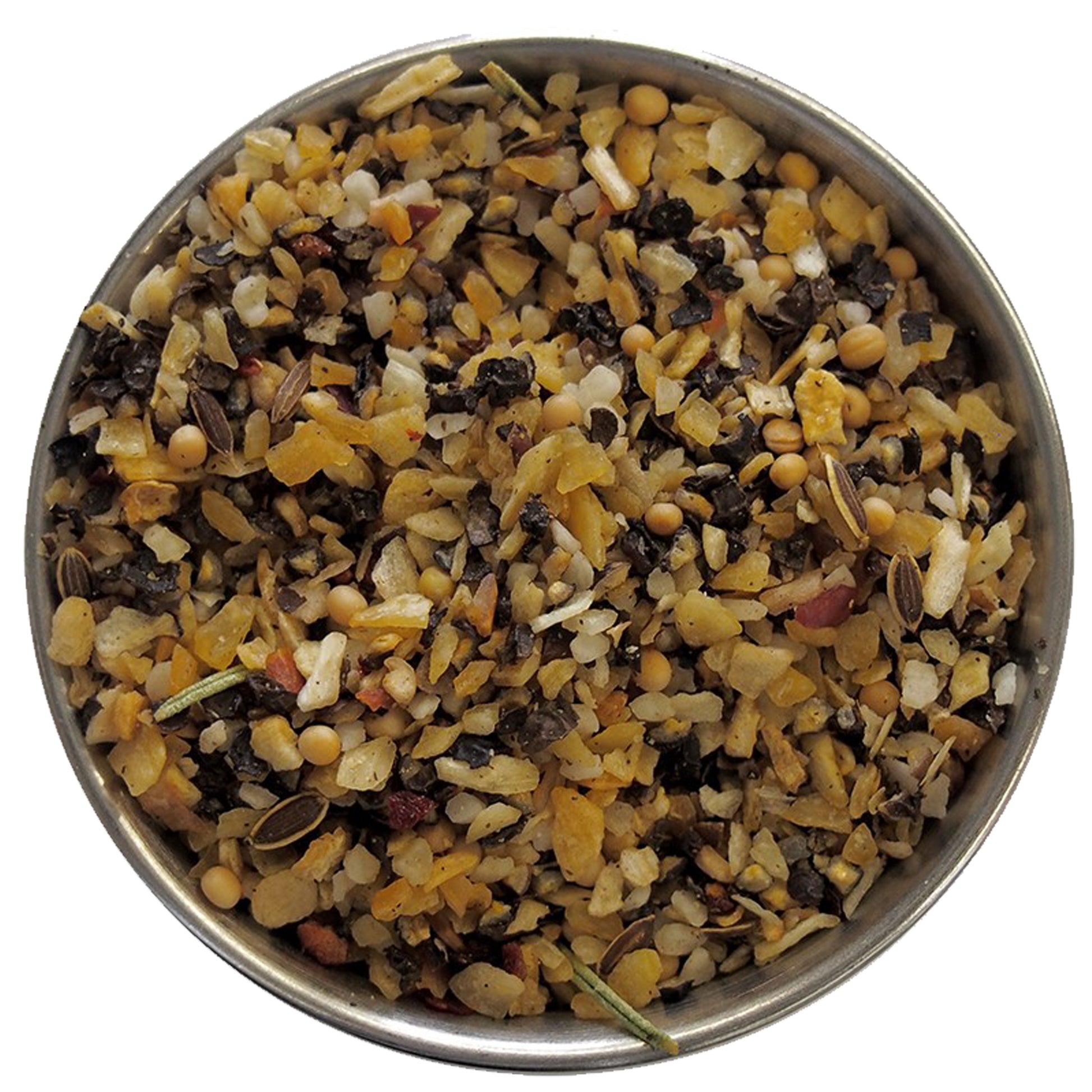 • Légumes déshydratés (ail, oignon, poivron rouge) • Épices irradiées (moutarde)