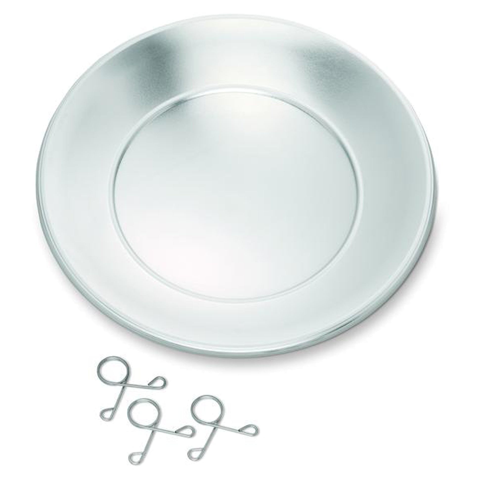 - Le bac est de 13 1/2" de diamètre et comprend les trois clips de retenue à ressort qui se fixent aux pieds.