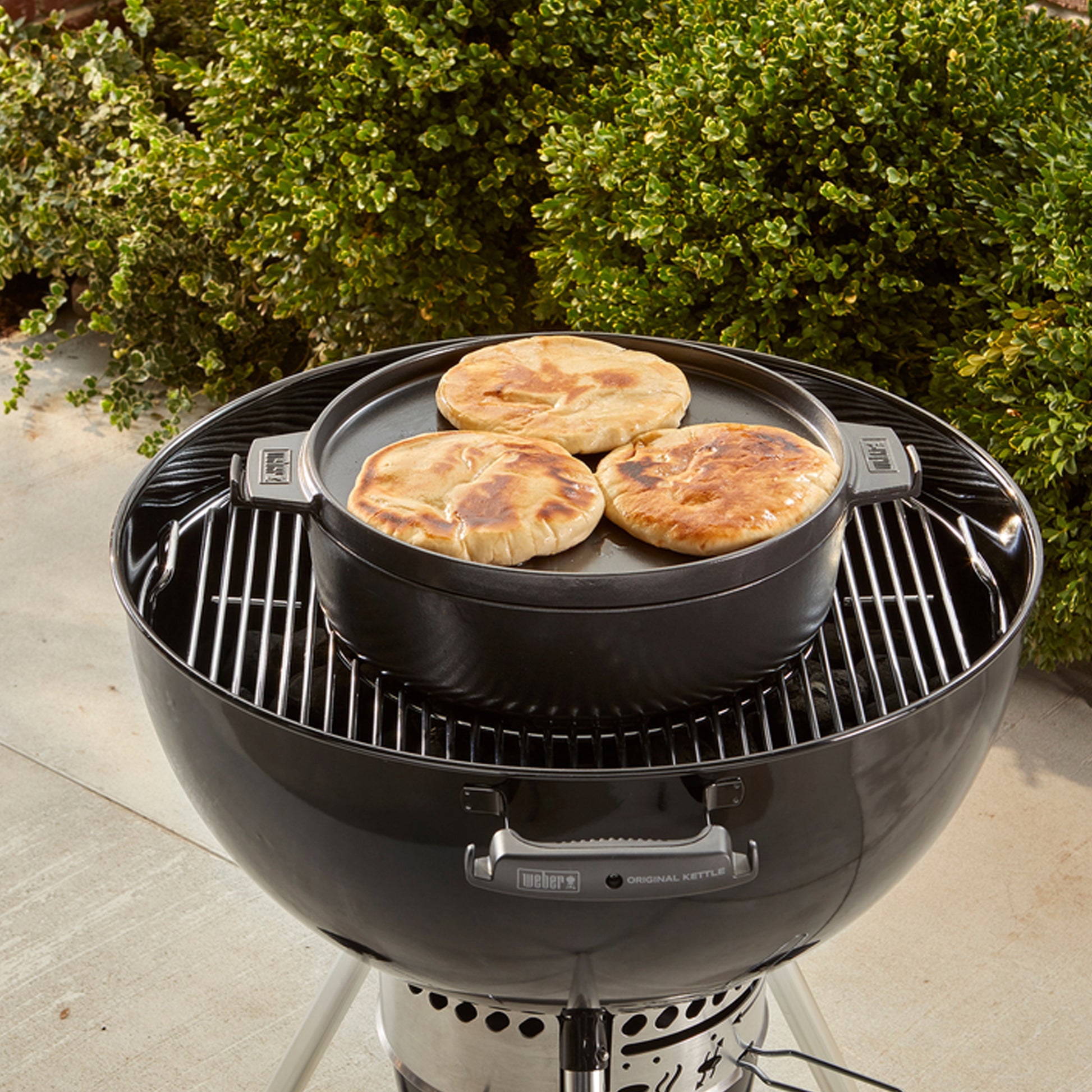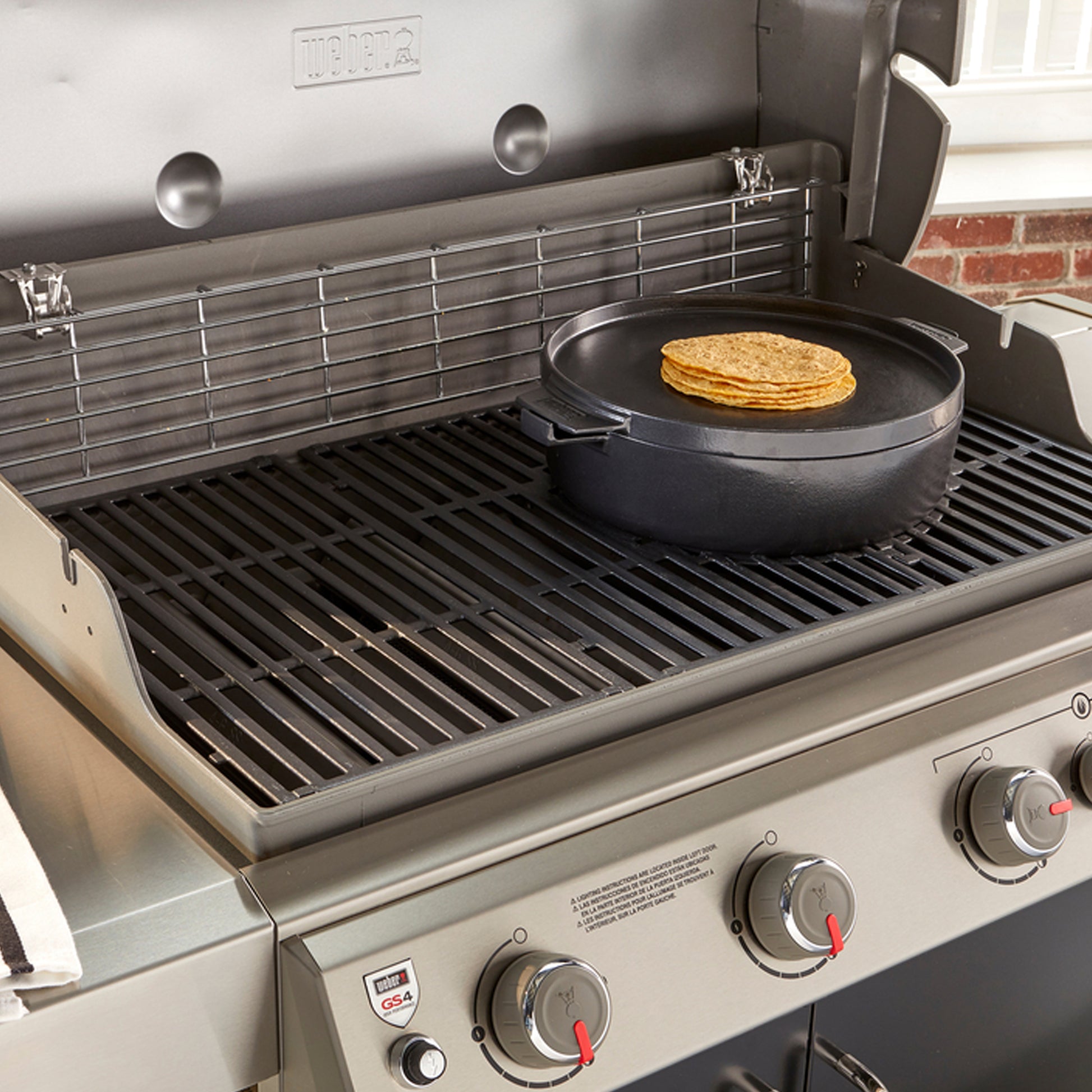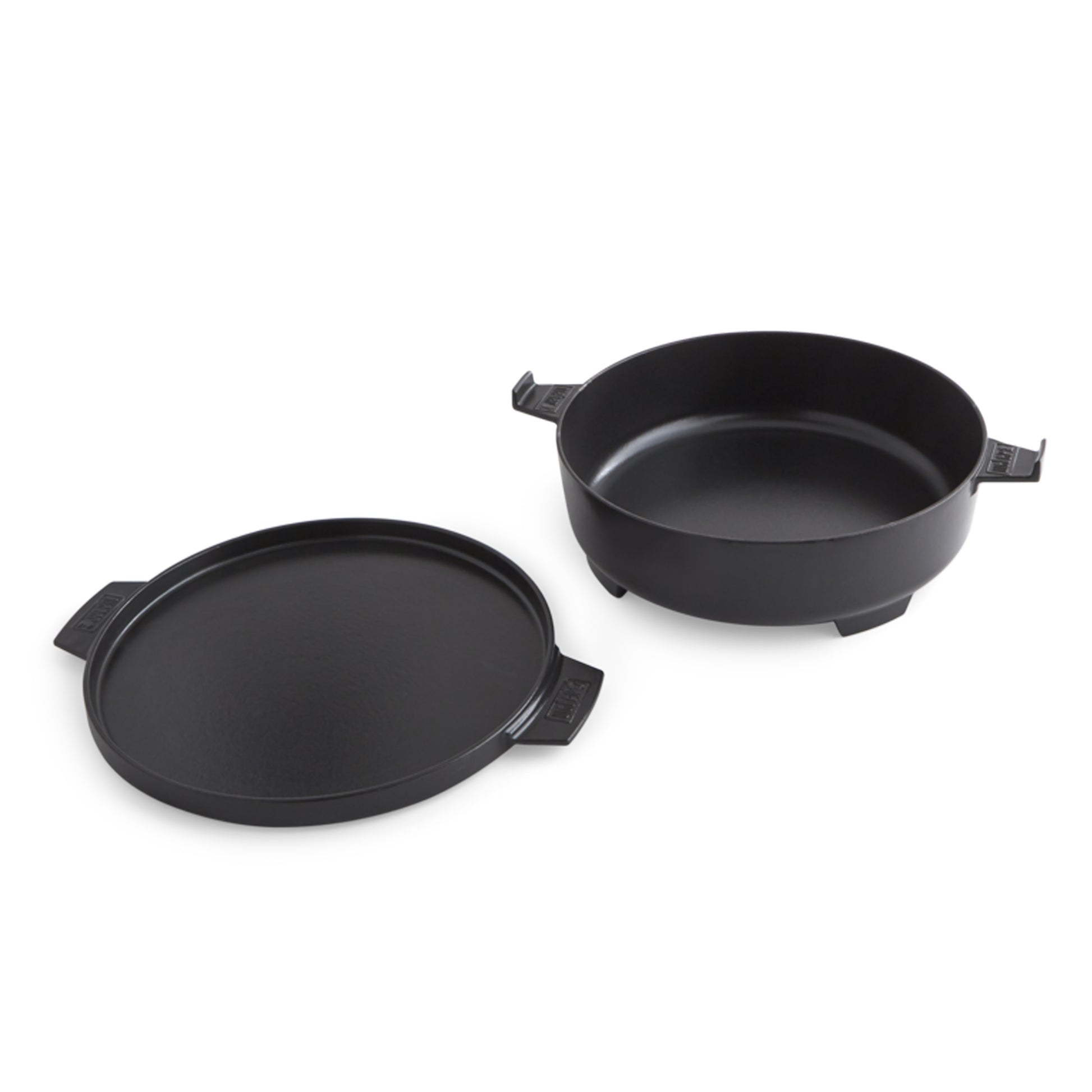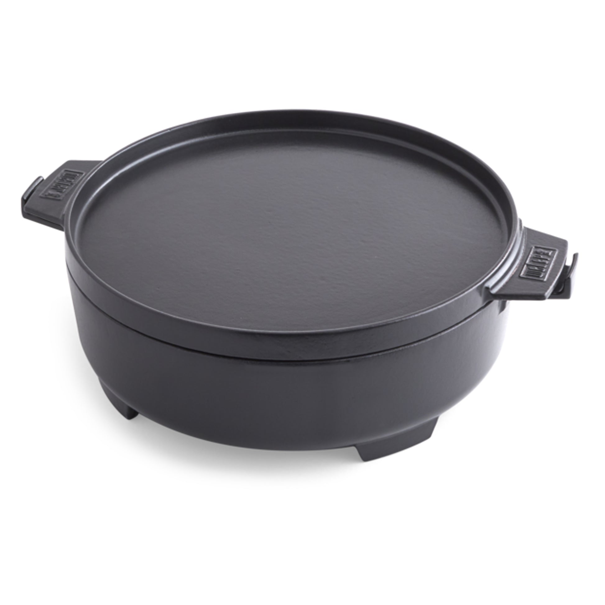 Ce duo polyvalent offre des possibilités infinies sur le BBQ. La cocotte en fonte de 4,12L offre une répartition et une rétention uniformes de la chaleur pour les rôtis tendres ou les soupes et ragoûts savoureux. Le couvercle à double fonction se transforme en une plaque chauffante plate qui grille les sandwichs ou cuit parfaitement les poitrines de poulet et les légumes. La finition en émail vitrifié facilite le nettoyage et les deux pièces s'empilent pour économiser de l'espace lorsqu'elles sont rangées.