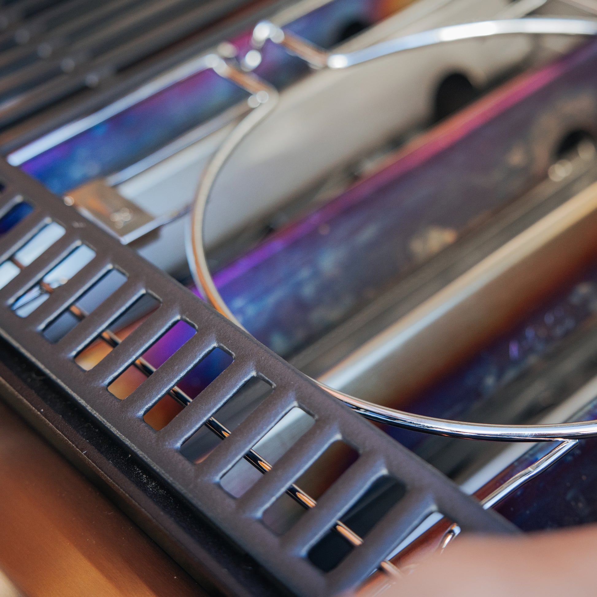Remplacez simplement la grille de cuisson droite par l'ensemble cadre et entretoise WEBER CRAFTED, placez l'ustensile dans le cadre et commencez la cuisson. Les ustensiles WEBER CRAFTED sont interchangeables pour une polyvalence sans fin.