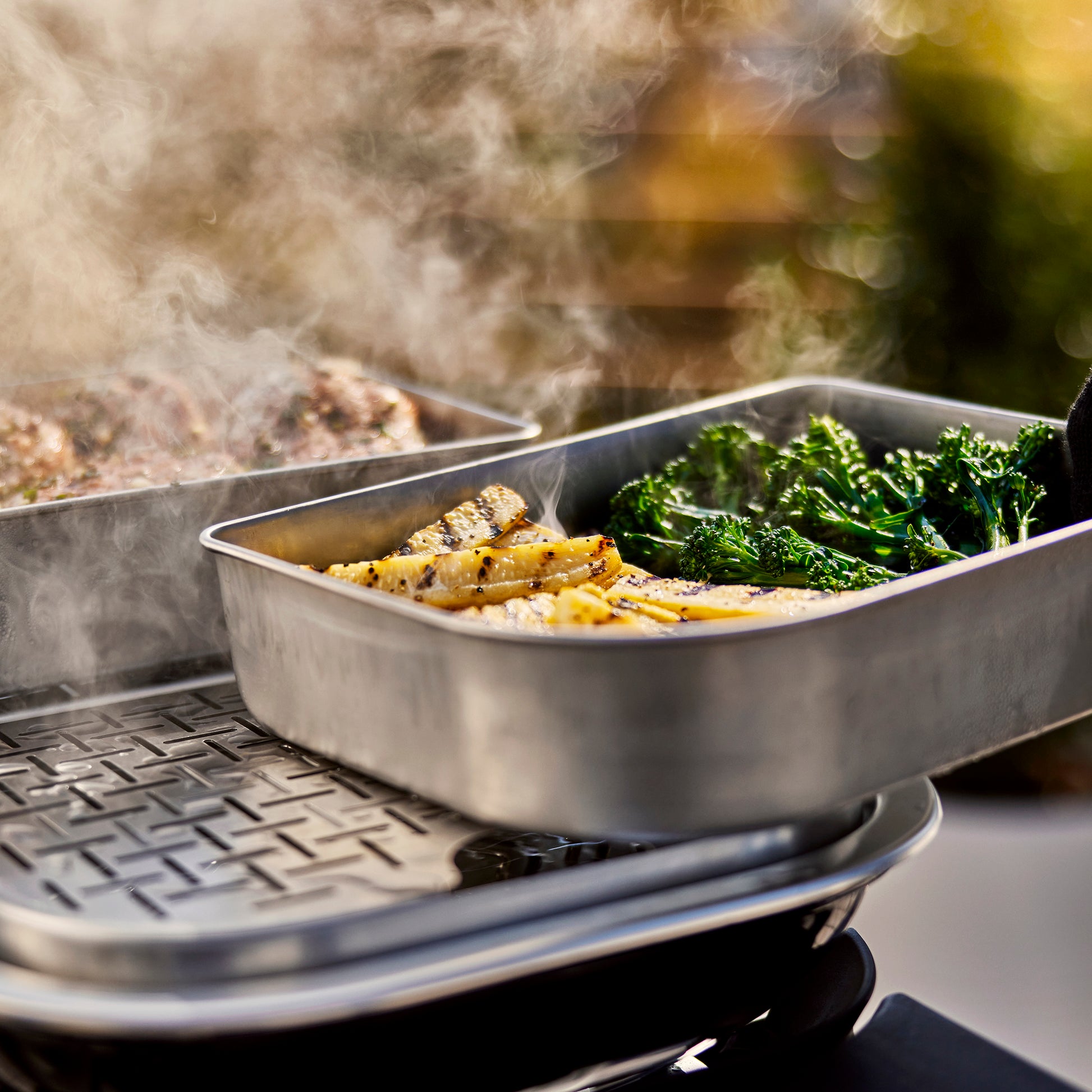 Augmentez les capacités de votre barbecue électrique Lumin avec ce kit d’extension polyvalent 4 pièces. Le réservoir à double fonction élargit la fonctionnalité de cuisson vapeur et de fumage de votre barbecue sur toute la surface de cuisson. Il transforme la fonction d’infusion de fumée de votre barbecue Lumin en fumoir électrique complet. Il suffit d'ajouter des copeaux de bois Weber de votre choix à des mets préférés cuits à feu doux comme des côtes levées, un soc de porc ou une poitrine de bœuf. Il vous permet également de cuire à la vapeur des légumes frais, du poisson ou un homard entier.